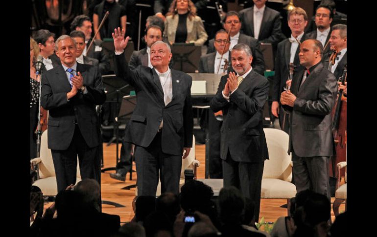 Jalisco | Con un concierto en el Teatro Degollado reconocen la labor del cardenal Sandoval dedica homenaje a la Iglesia tapatía El gobernador Emilio González destaca que ha trabajado intensamente por la comunidad jalisciense Por: EL INFORMADOR 29 de julio de 2011 - 20:39 hs El cardenal Juan Sandoval Íñiguez saluda y agradece a los asistentes al concierto. S. NÚÑEZ / - Cercan Plaza Liberación por homenaje al cardenalGUADALAJARA, JALISCO (29/JUL/2011).- El cardenal Juan Sandoval Íñiguez dedicó el homenaje del Gobierno de Jalisco a la Iglesia de Guadalajara, entendida ésta como su comunidad humana, desde su formación hace casi cinco siglos, hasta su actual conglomerado de personas religiosas y laicas. En su discurso en el Teatro Degollado, el purpurado apuntó que la huella de la Iglesia católica en la identidad tapatía debe seguir para las demás generaciones, como ha quedado de parte de las anteriores en diversas instituciones de innegable trascendencia social, como el Hospital Civil, el Hospicio Cabañas y la anterior Universidad de Guadalajara. Previo a la intervención del arzobispo tapatío, el gobernador Emilio González destacó que a nombre del pueblo de Jalisco se realizó el homenaje a la trayectoria “de un hombre de fe”, que ha trabajado intensamente desde su vocación religiosa por la comunidad jalisciense. Al acto acudieron diversas personalidades de la comunidad tapatía, sobre todo del sector eclesiástico, del medio empresarial y la clase política. El homenaje fue engalanado en el aspecto artístico por un concierto a cargo de la Orquesta Filarmónica de Jalisco dirigida por el maestro Leslie Dunner, un músico afroamericano, quien ha dirigido recientemente el Ballet de Louisville, Kentucky. EL INFORMADOR / SALVADOR Y MALDONADO Temas Iglesia Católica en Jalisco Gobierno del Estado Juan Sandoval Íñiguez Lee También Celebran a los danzantes en su día como símbolo de la riqueza cultural Muere conductor tras choque entre camioneta y camión en Arandas Abre centro de acopio del DIF para afectados por lluvias en Puerto Vallarta Hay más de mil viviendas afectadas por lluvias en Puerto Vallarta: Protección Civil Recibe las últimas noticias en tu e-mail Todo lo que necesitas saber para comenzar tu día Registrarse implica aceptar los Términos y Condiciones