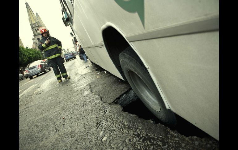 Jalisco | Mide tres por tres metros, con una profundidad de uno Se abre socavón en avenida Alcalde y Juan Manuel Un autobús del transporte público cayó en el hoyanco que mide tres por tres metros, con una profundidad de uno Por: EL INFORMADOR 24 de agosto de 2012 - 19:01 hs La parte trasera de un autobús del transporte público cayó en el hoyanco. / GUADALAJARA, JALISCO (24/AGO/2012).- La Dirección de Bomberos y Protección Civil de Guadalajara confirmó la existencia de un socavón en el carril central de Juan Manuel, en su cruce con Avenida Alcalde, por lo que también afecta al carril lateral de esta vía, en su sentido de Norte a Sur. Un autobús del transporte público, en su parte trasera, cayó en el hoyanco que mide tres por tres metros, con una profundidad de un metro. La dependencia municipal estima que se habrá generado aproximadamente a las 18:40 horas. Lo que sigue es notificar a la Secretaría de Obras Públicas de Guadalajara para que determine el origen del socavón y la mejor manera de repararlo. Si se causó por una fuga de agua cercana, será necesaria la intervención del Sistema Intermunicipal de Agua Potable y Alcantarillado (SIAPA) para su compostura. Es posible también, sin embargo, que se haya generado por la filtración de agua de lluvia a través de las fracturas del concreto hidráulico, lo que causa que el líquido vaya deslavando el subsuelo de la vialidad hasta formar este tipo de concavidades. Las primeras revisiones de la Dirección de Bomberos y Protección Civil tapatía apuntan, no obstante, a que la causa sea la primera, esto es que, efectivamente, el problema sea que hay agua escapando de la red hidrosanitaria. Se estima que será sólo cuestión de algunos días para que la vialidad quede arreglada. EL INFORMADOR / LUIS HERRERA Temas Transporte Público Vialidad Obras públicas en Guadalajara Socavones Lee También Asegurán más huachicol en el municipio de Degollado Ticketmaster tiene todos estos conciertos al 2x1 en Monterrey Viene por la tarde la tormenta a Guadalajara Ticketmaster tiene todos estos conciertos al 2x1 en Ciudad de México Recibe las últimas noticias en tu e-mail Todo lo que necesitas saber para comenzar tu día Registrarse implica aceptar los Términos y Condiciones