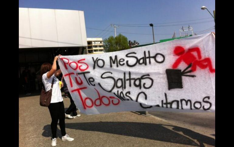 Jalisco | El colectivo #PosMeSaltoGdl libera los torniquetes en la estación Agua Azul Se manifiestan en Macrobús contra aumento a tarifa de transporte El colectivo #PosMeSaltoGdl libera los torniquetes en la estación Agua Azul Por: EL INFORMADOR 25 de enero de 2014 - 13:28 hs Con gritos ''de no al aumento'', invitan a los usuarios a que no pagaran por utilizar el servicio. / GUADALAJARA, JALISCO (25/ENE/2014).- Dos horas después de lo pactado, el grupo #PosMeSaltoGDL se manifestó en las estaciones Agua Azul y San Juan de Dios del Macrobús y también en la estación San Juan de Dios del Tren Ligero contra el aumento a la tarifa del transporte público. Alrededor de 20 personas de este colectivo y otros más que se sumaron conforme a la marcha tomaron las instalaciones de las estaciones e invitaron a los usuarios a brincarse los torniquetes y no pagar por el servicio. La cita era originalmente a las 12 del mediodía, en el monumento a Juárez ubicado en la plaza del mismo nombre. Antes del inicio de la protesta, se pintaron algunas mantas y se hizo entrega de volantes informativos para convocar a más inconformes, aprovechando la concurrencia que asiste al tianguis cultural que se instala en ese lugar; sin embargo, el grupo que se conjuntó no fue mayor a 80 personas. Para su protesta, se colocaron en ambos sentidos de cada estación, en donde con gritos y consignas hacían patente su inconformidad con la tarifa del transporte público; en medio de las protestas, señalaban a los usuarios que hoy no pagarían por el servicio de Macrobús, pues el servicio que era deficiente no valía el costo que ahora tiene. En las estaciones que tomaron, la mayoría de los usuarios atendieron a la solicitud de no pagar el servicio y ante la mirada de los vigilantes, pasaron libremente y decidieron no aportar la cuota. Otros simplemente se quedaban mirando con curiosidad mientras otros pocos no hacían caso a la protesta y decidieron pagar el servicio. Con gritos como "bríncate, bríncate" y "siete pesos, siete muertos" los inconformes continuaron con su manifestación en estas estaciones del transporte. En la estación San Juan de Dios del Tren Ligero, una señora se acercó al grupo de manifestantes y los felicitó por su causa, pues dijo, los bajos salarios no alcanzan a cubrir el costo que este servicio tiene y menos aún, como señaló, cuando éste no es de calidad. Para saber Vigilantes de la empresa de seguridad privada que están en las estaciones de Macrobús y del Tren Ligero recibieron la instrucción directa de Siteur para dar libre paso a los usuarios y no amedrentar a los manifestantes, lo que garantizó que este protesta se realizara de manera pacífica. EL INFORMADOR / ALAN RODRÍGUEZ Temas Manifestaciones en Jalisco Aumento transporte público Municipios Macrobús Lee También No descartan episodios de lluvia dispersa este sábado en Guadalajara Policía de Zapopan realiza cinco detenciones en una semana Astros de Jalisco doblega a Xalapa y se pone a un juego de la Final de Zona Escuela Gómez de Mendiola celebra sus primeros 75 años al servicio de los tapatíos Recibe las últimas noticias en tu e-mail Todo lo que necesitas saber para comenzar tu día Registrarse implica aceptar los Términos y Condiciones