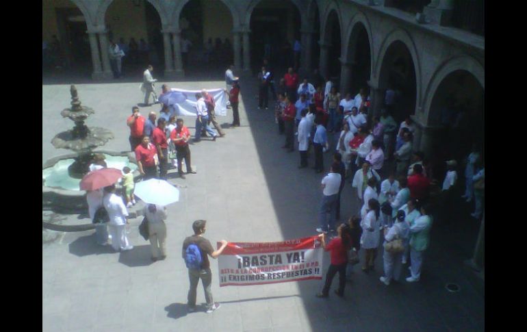 Jalisco | Exige destitución de la directora general del 'Hospitalito', Adriana Capurro Ceballos Se manifiestan trabajadores de Salud en Zapopan Exige la destitución de la directora general Adriana Capurro Ceballos y denuncia corrupción en la administración de los reactivos y medicamentosEl contingente que no rebasa el ciento de personas Por: EL INFORMADOR 28 de marzo de 2012 - 11:58 hs Los trabajadores del nosocomio afirman que se quedarán afuera de la presidencia municipal hasta que los atiendan. / GUADALAJARA, JALISCO (28/MAR/2012).- Trabajadores de la dirección de Salud de Zapopan, se manifiestan afuera de la presidencia municipal, luego de haber tomado las instalaciones del Organismo Publico Descentralizado desde la mañana del martes. El contingente que no rebasa el ciento de personas, exige la destitución de la directora del Hospital general de Zapopan, Adriana Capurro Ceballos y denuncia corrupción en la administración de los reactivos y medicamentos, además de que piden que se cumplan las promesas que había hecho Héctor Vielma al principio de su administración. Por el momento los inconformes se aglutinan sobre la Avenida Hidalgo impidiendo el tránsito vehicular. Afirman que se quedarán en ese lugar hasta que el presidente municipal los atienda. En unos minutos el primer edil dará una rueda de prensa para manifestar las acciones que tomará la administración municipal. EL INFORMADOR / OMAR GARCÍA Temas Manifestaciones en Jalisco Ayuntamiento de Zapopan Municipios Hospitalito Recibe las últimas noticias en tu e-mail Todo lo que necesitas saber para comenzar tu día Registrarse implica aceptar los Términos y Condiciones