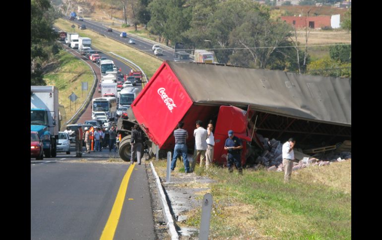 Jalisco | Uno de los implicados huyó del lugar Seis lesionados por choque en autopista Guadalajara–Zapotlanejo Trabajadores de la Comisión Federal de Electricidad intentaban poner un poste cuando ocurrió el accidente Por: EL INFORMADOR 23 de noviembre de 2010 - 05:41 hs Entre los vehículos participantes están; una camioneta tipo pick up, una grúa de la CFE y un tráiler con refrescos. M. PATIÑO / GUADALAJARA, JALISCO (23/NOV/2010).- Al intentar poner un poste sobre el camellón de la autopista Guadalajara–Zapotlanejo, un camión tipo grúa de la Comisión Federal de Electricidad (CFE) fue impactado por un tráiler, el cual también chocó una camioneta. Los hechos ocurrieron minutos después de las 11:00 horas de ayer, sobre la vía en mención, a la altura del cortijo Los Fernández, cuando técnicos de la empresa de luz intentaron parar el tráfico sin precaución alguna, para que uno de sus camiones se internara en el camellón central, con la intensión de colocar un poste para alzar el cableado que atraviesa la autopista, provocándose el accidente en el que cuatro personas resultaron con lesiones graves y otras dos con heridas leves. Al llegar al tramo carretero en mención, en el sentido hacia Zapotlanejo, una camioneta tipo pick up, de modelo atrasado, fue impactada por el tráiler que transportaba refrescos, el cual, a su vez, golpeó al camión grúa de la CFE, provocándole una volcadura, y terminando ambos cargueros volteados sobre el camellón central. Tras el percance, el chofer del carguero que transportaba refrescos huyó del lugar. Los lesionados fueron trasladados a un hospital particular. El accidente generó un severo congestionamiento vial en la zona. Pasajeros de la camioneta particular Víctor Jaime Quezada, de 42 años de edad (conductor). Olivia Ríos Ruíz, de 40 años. José Alberto Jaime Ríos, de 16 años. Nayeli Jaime Ríos, de 15 años. Los cuatro son originarios del municipio de Degollado y fueron trasladados graves a un hospital particular. Tripulantes del camión grúa de la CFE Cristóbal Barajas Lomelí, de 33 años de edad, resultó con heridas leves. Guillermo Lomelí Ortega, de 33 años, cuenta con heridas regulares. Temas Seguridad CFE Carreteras de Jalisco Lee También Puerto Vallarta en desgracia; tormenta deja daños y un muerto (FOTOS) Calidad del Aire AMG: ¿Cómo amanece la ciudad HOY lunes 13 de octubre de 2025? Paquetazo 3×1: Estos propietarios tienen hasta el 31 de octubre para cambiar placas El supermercado más caro de Jalisco se encuentra en Guadalajara: Profeco Recibe las últimas noticias en tu e-mail Todo lo que necesitas saber para comenzar tu día Registrarse implica aceptar los Términos y Condiciones