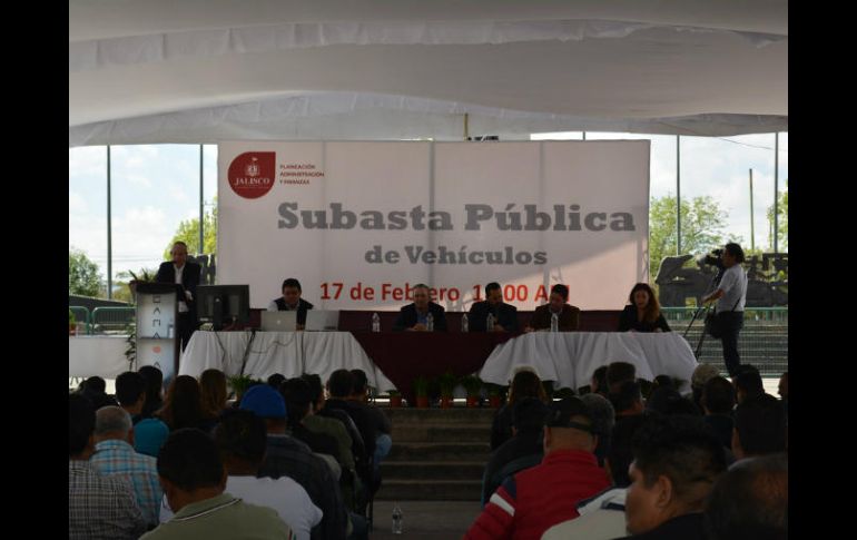 GUADALAJARA, JALISCO (17/FEB/2017).- Este viernes el Gobierno de Jalisco llevó a cabo la subasta de 116 vehículos de su propiedad, mismos que eran de distintas marcas y modelos que iban de 1993 al 2012, por los cuales obtuvo una recaudación total por 6.1 millones de pesos, ingreso que irá al Fondo de contingencia del Estado, señaló Luis Mauricio Gudiño Coronado, subsecretario de Administración, de la Secretaría de Planeación, Administración y Finanzas (Sepaf). Agregó que los 6.1 millones captados en éste, que es el tercer remate de vehículos oficiales de la actual administración y el primero del 2017, supera las expectativas en recaudación que se tenía como "costo base" o "de salida" (de la subasta) por el total de los automotores ofertados, el cual sumaba dos millones 698 mil pesos. El martillazo de salida, minutos después de las 11 de la mañana, estuvo a cargo de Gudiño Coronado, quien presenció cada una de las pujas que el proveedor de subasta Carasa llevó a cabo durante poco más de cuatro horas en la Plaza Juárez, lugar que dijo, se eligió con el objetivo de ofrecer una almoneda abierta al público en general y en total transparencia. El Subsecretario de Administración explicó que una vez que los 99 mejores postores lograron adquirir los vehículos oficiales, estos deberán pagar su adquisición a más tardar el viernes 24 de febrero, posteriormente, el 6 de marzo se iniciará la entrega de los vehículos. Gudiño recordó que los 116 vehículos subastados son parte de un parque vehicular de 150 unidades que se encontraban asignadas a diferentes dependencias estatales y que fueron detenidos de manera permanente como parte del programa de ahorro que el mandatario estatal, Aristóteles Sandoval Díaz mantiene de forma permanente desde el inicio de su administración.