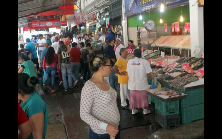 GUADALAJARA, JALISCO (14/ABR/2017).- Este viernes, las instalaciones del Mercado del Mar de Guadalajara lucen abarrotados por los compradores que han acudido en gran cantidad para conseguir productos marinos, con motivo del Viernes Santo.Los usuarios buscan entre los locales pescado, pulo, camarón, calamar, patas de mula, y otra gran variedad de mariscos, mientras que, según reportes, las calles aledañas al lugar presentan problemas viales debido a la lenta circulación por los autos estacionados en ambas aceras.Las personas dicen que los precios de los alimentos se han mantenido estables esta semana, aunque sí presentan alzas respecto a los precios de semanas anteriores.