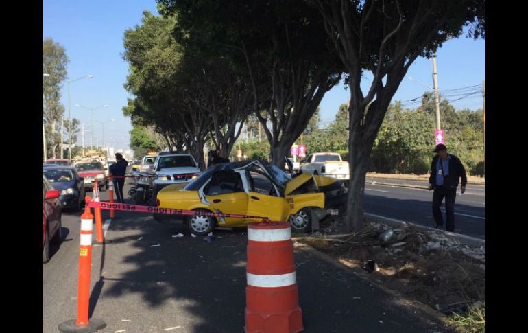 GUADALAJARA, JALISCO (25/NOV/2016).- Un aparatoso choque de un vehículo de alquiler contra un árbol en Carretera a Tesistán fue reportado esta mañana por Bomberos de Zapopan.Los hechos ocurrieron a la altura de la calle Los Robles en la colonia del mismo nombre.El taxi se impactó contra un árbol del camellón dejando como saldo dos lesionados, un hombre y una mujer, que fueron trasladados en estado regular a las instalaciones de la Cruz Verde Norte, informó la corporación.