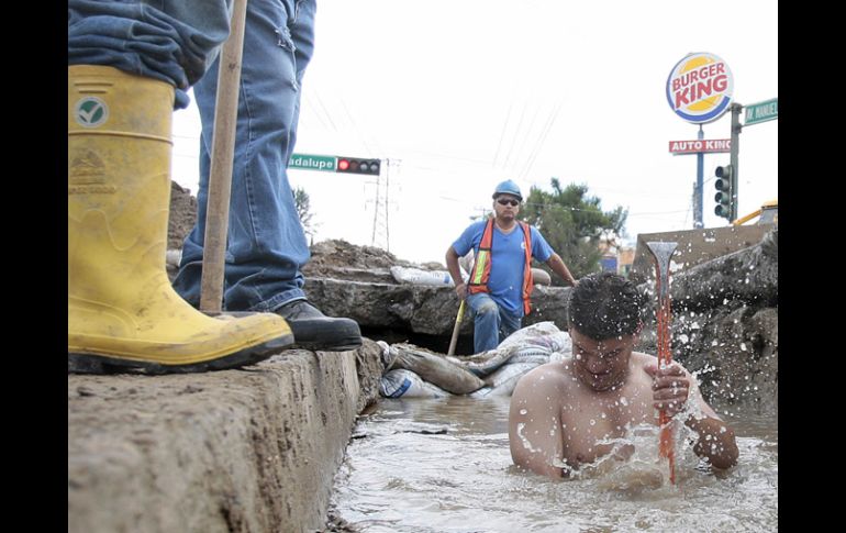 Jalisco | Señalan la posibilidad de terminar el trabajo el lunes próximo a mediodía Tomará tres días reparar el socavón de avenida Clouthier Ya se realizan las labores de reparación, donde además se había afectado una línea de agua potable Por: EL INFORMADOR 20 de agosto de 2010 - 03:26 hs Los trabajadores del SIAPA intentan contener la fuga. S. NÚÑEZ / ZAPOPAN, JALISCO (20/AGO/2010).- Lo que comenzó con un socavón de pequeñas dimensiones se ha convertido en una pesadilla para el personal del Sistema Intermunicipal de Agua Potable y Alcantarillado ( SIAPA), pues los tres carriles de Manuel J. Clouthier que van de Patria hacia el nodo Los Cubos, están cerrados desde el pasado miércoles alrededor a las 19:00 horas, debido a un hundimiento del subsuelo provocado por una falla en un colector. Ignacio Ávila Ramírez, jefe de sección de Alcantarillado del Sector Hidalgo, explicó que el desperfecto “se debe a un colector que pasa por ahí, donde la loza de una caja tenía una pequeña apertura, que lo único que hizo fue llevarse el material y que ingresara en ese lugar, y como está la caja completa, lo que se tuvo fue un hundimiento de 40 ó 30 centímetros”. El funcionario indicó que están reparando la caja del colector que se movió por la presión del agua, y tienen contemplado terminar los trabajos el próximo lunes a mediodía, aunque hay posibilidades de terminen antes. En el lugar, una cuadrilla de trabajadores del SIAPA abrió un socavón de 10 metros de ancho por siete de largo y 1.20 de profundidad, para poder realizar las labores de reparación, donde además se había afectado una línea de agua potable. Por su parte, Andrés Garibaldi, director de Agua Potable y Alcantarillado de Zapopan, indicó que la Dirección de Obras Públicas del municipio intervino para apoyar al personal del SIAPA y agilizar las obras de reparación. “Había una fuga en alguna tubería y se fueron debilitando las losetas de la calle. Según manifestó SIAPA, en tres o cuatro días queda reparado ya con la colocación de concreto hidráulico”. Temas Siapa Municipios Socavones Lee También Suben termómetros en Guadalajara y se espanta la lluvia este martes Puerto Vallarta en desgracia; tormenta deja daños y un muerto (FOTOS) Regresa el calor este lunes a Guadalajara; se prevé lluvia ¿Cuál era la relación entre el barco pirata hundido en Vallarta y Colón? Recibe las últimas noticias en tu e-mail Todo lo que necesitas saber para comenzar tu día Registrarse implica aceptar los Términos y Condiciones
