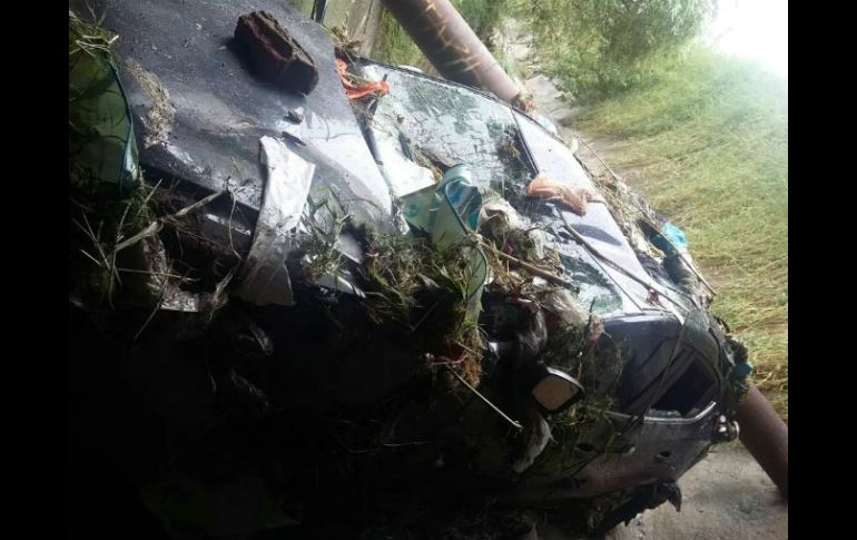 Se trata de un Mazda 3 modelo 2015, el cual al circular por el sitio se internó en un vado; sucedió entre las 03:30 y las 04:00 horas. ESPECIAL /