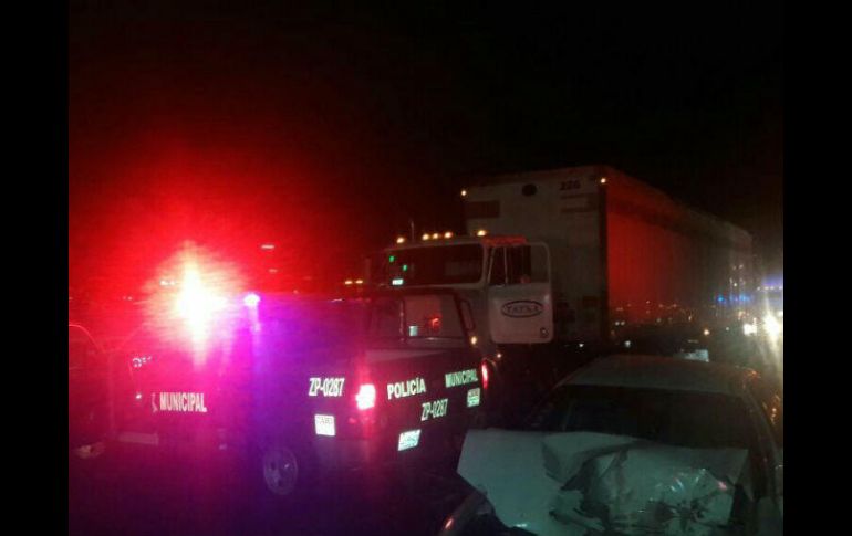 GUADALAJARA, JALISCO (14/MAR/2017).- Cerca de la madrugada de este martes se registró un fuerte choque entre un tráiler, una patrulla de la Policía de Zapopan y un automóvil particular, sobre el paso elevado de Periférico y Santa Margarita.Elementos de la policía zapopana se encontraban auxiliando a un joven que había protagonizado un accidente de motocicleta, cuando el tráiler se impactó contra la patrulla y contra un vehículo tipo sedán blanco.En el lugar del incidente se registraron tres lesionados, una pareja de jóvenes que viajaban a bordo del auto blanco y el joven que anteriormente ya se encontraba lesionado luego del accidente en la motocicleta.El percance ocurrió sobre el paso elevado de Periférico y Santa Margarita, en Zapopan, con sentido de Carretera a Tesistán hacia Juan Palomar y Arias.