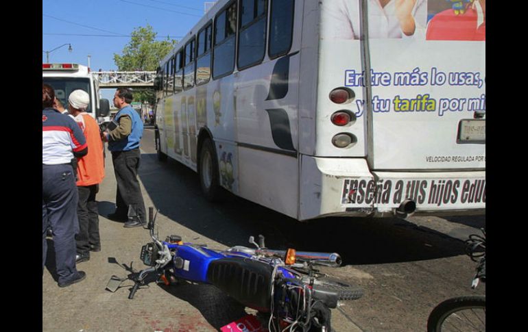 Jalisco | Se trata de un joven de 19 años y una mujer de 85 arrollada por la ruta 636 Transporte público, involucrado en la muerte de dos personas Se trata de un joven de 19 años de edad quien viajaba en su moto y de una mujer de 85 años que fue arrollada por la ruta 636 Por: EL INFORMADOR 4 de octubre de 2012 - 19:31 hs Un joven que iba en su motocicleta se impactó contra una unidad del transporte público. ARCHIVO / GUADALAJARA, JALISCO (04/OCT/2012).- Conductores del transporte público cobraron dos víctimas mortales más; ambas convalecieron días atrás en diversos nosocomios. En lo que va del año son ya 37 las personas que han perdido la vida en accidentes relacionados con el transporte público. De acuerdo con el acta complementaria número 587/2012, del Servicio Médico Forense (Semefo), un joven de 19 años de edad perdió la vida por lesiones sufridas al chocar y ser atropellado por una unidad de transporte público; pereció en el Centro Médico Nacional de Occidente (CMNO) del IMSS. Se trata del motociclista Rafael García González, de 19 años. Se informó que el ahora muerto fue recogido en estado grave, la noche del pasado miércoles, por paramédicos de la Cruz Verde Zapopan Norte, en el cruce de las calles Industria del Vestido e Industria Hulera, de la Colonia Parque Industrial, en el Municipio de Zapopan, donde fue arrollado por un midibús. El joven fue hallado junto a una motocicleta Honda Cross, de colores blanco y rojo, sin matrícula de circulación, y presentaba fracturas diversas y heridas en la cabeza, por lo que luego de ser estabilizado en el puesto de socorros fue enviado al CMNO donde murió horas después, por contusión de cráneo y abdomen de tercer grado. Posteriormente fue encontrada en la Colonia San Isidro, en Zapopan, una unidad de la ruta 634, con número económico S-1627 y placas de circulación 716-539-G, que fue abandonada por su conductor, y señalada como la causante de la muerte. Para efectuar la identificación oficial se presentó María Félix González Carmona, de 40 años, quien manifestó que su hijo tenía domicilio en la calle Puerto Altamira, de la Colonia Miramar, también en la ex Villa Maicera. La otra víctima del transporte público es una mujer de 85 años de edad, quien era vecina de la colonia Oblatos, en el municipio de Tlajomulco de Zúñiga. Según el acta complementaria número 943/2012, del Semefo, a las 12:30 horas del mediodía del pasado miércoles la octogenaria perdió la vida. La anciana fue recogida, por paramédicos de la Cruz Verde Ruiz Sánchez, alrededor de las 10:00 horas, en el cruce de las avenidas Circunvalación Oblatos y Artesanos, donde fue arrollada por un camión de la ruta 636, con número económico S-0336, y placas de circulación 717-297-G, el cual fue abandonado por su conductor en la calle Hacienda Santa Fe y la Avenida Plutarco Elías Calles, en Oblatos. La mujer aún con vida fue trasladada al puesto de socorros, donde murió dos horas después, a consecuencia de una contusión de tercer grado en pelvis y ambas extremidades inferiores, complicado con anemia agudizada (por el sangrado interno). El cadáver de la señora Consuelo Velasco Arrezola, de 85 años, quien era vecina de la calle Hacienda Santa Fe, en la Colonia Oblatos, fue identificada por su hija María Yolanda Reyes Velasco, de 42 años. Temas Seguridad Muertes a causa del transporte público Cruz Verde Lee También Adiós a Diane Keaton, ganadora del Oscar y musa de Woody Allen Atención, MiBici cerrará 12 estaciones por la Romería 2025 Muere la actriz Diane Keaton a los 79 años Detienen a asesino de joven en partido de futbol Recibe las últimas noticias en tu e-mail Todo lo que necesitas saber para comenzar tu día Registrarse implica aceptar los Términos y Condiciones