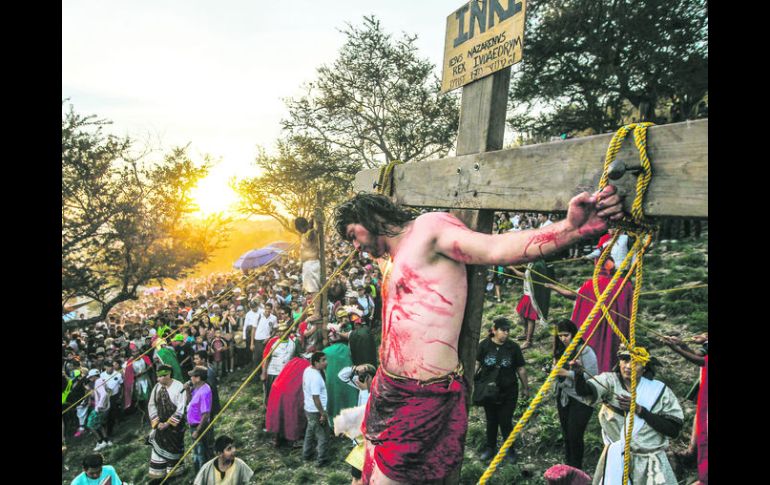 Jalisco | Miguel Iván Alejo Guareño es el nuevo actor del viacrucis Tras 19 años, cambia actor que encarna a Jesucristo en la judea en San Martín Miguel Iván Alejo Guareño es el nuevo actor del segundo viacrucis más importante a nivel nacional Por: EL INFORMADOR 4 de abril de 2015 - 03:53 hs SIGUE LA TRADICIÓN. Miguel Iván Trejo, ayer en la cruz, en San Pedro Tlaquepaque. EL INFORMADOR / F. Atilano GUADALAJARA, JALISCO (04/ABR/2015).- Miguel Iván Alejo Guareño se preparó física, mental y espiritualmente para representar a Jesucristo en La Judea en Vivo de San Martín de las Flores, un personaje que fue representado por Boni Ernesto Haro en 19 de los últimos 20 años. Por eso este Viernes Santo fue de estreno en la comunidad localizada al sureste de Tlaquepaque. Músico y cantante de profesión, vecino de la colonia Santa Cruz de las Huertas, en Tonalá, Iván tuvo su debut en el segundo viacrucis con más importancia a nivel nacional, junto con Mayra Casillas, quien representó a la Virgen María. Sin embargo, es el noveno año que Miguel Iván lo representa, pues antes había sido Jesús en la representación de su comunidad. “El personaje sigue siendo el mismo en todos lados, pero aquí es diferente porque la comunidad está muy comprometida”. Desde el mes de enero, Iván se preparó todos los días, corría dos tandas de 45 minutos y cargaba pesas. “Pero lo que me interesaba era estar más fuerte por dentro: espiritual y mentalmente. Fui a retiros espirituales, participaba en mi comunidad, cantaba alabanzas”. Temas Religión Municipios Semana Santa Recibe las últimas noticias en tu e-mail Todo lo que necesitas saber para comenzar tu día Registrarse implica aceptar los Términos y Condiciones