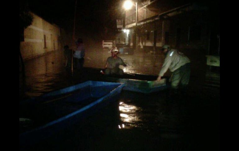 Jalisco | Protección Civil rescata a personas de camionetas y en azoteas Tromba deja dos desaparecidos en Teuchitlán Protección Civil rescata a personas de camionetas y en azoteas Por: SUN 8 de junio de 2013 - 08:37 hs Elementos de Protección Civil rescatan a personas luego de la tromba en el municipio de Teuchitlán. Foto: @ReportGDL ESPECIAL / TEUCHITLAN, JALISCO (08/JUN/2013).- Dos personas desaparecidas e inundación en el interior de al menos 60 casas en la cabecera municipal de Teuchitlán, en la región Valles de Jalisco, es el resultado de una tromba que cayó anoche en la localidad. Miguel Angel Delgadillo Cortés, encargado de Protección Civil del municipio, reportó esta madrugada que alrededor de las 19:30 horas de ayer inició una tormenta acompañada de viento y granizo que cesó alrededor de las 21:30 horas. "Estaba la tromba cuando empezamos a desalojar personas por los niveles del agua que subían rápidamente. Acudimos en lanchas a rescatar personas de camionetas. Luego rescatamos a las que se quedaron en las azoteas de sus casas", informó. Señaló que 59 personas fueron desalojadas de sus domicilios, de las que 13 se resguardaron en un albergue habilitado en las instalaciones del DIF municipal en la calle Vicente Guerrero, en pleno centro de la localidad. Delgadillo Cortés indicó que en unas 60 casas el agua subió más de un metro de altura y que en la zona afectada cayeron postes y árboles. Entre tanto, habitantes reportaron la desaparición de dos jóvenes de alrededor de 18 años, quienes son buscados en un operativo conjunto entre autoridades municipales y estatales. Minutos antes de las 6:00 horas, llegaron al lugar elementos del ejército para apoyar las labores de desazolve y limpieza en el municipio, mientras se prevé la visita del gobernador del estado, Jorge Aristóteles Sandoval Díaz. Temas Inundaciones en Jalisco Municipios Protección Civil Jalisco Temporada de lluvias Lee También Cartucho Astros de Jalisco toma ventaja sobre Xalapa en la semifinal de zona Detienen a presunto homicida en Lomas de Oblatos Puerto Vallarta es reconocida como la mejor ciudad pequeña de Latinoamérica Recibe las últimas noticias en tu e-mail Todo lo que necesitas saber para comenzar tu día Registrarse implica aceptar los Términos y Condiciones