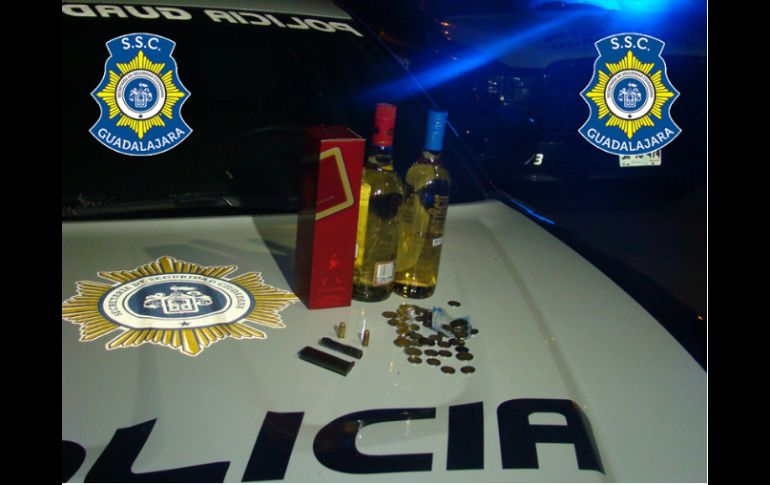Jalisco | Policías frustran el crimen de un joven de 18 años de edad Un detenido por asalto a vinatería El ahora detenido fue sorprendido con tres botellas de vino y 120 pesos en efectivo Por: EL INFORMADOR 29 de enero de 2013 - 14:07 hs Fotografía que muestra los licores y armas aseguradas por las autoridades. ESPECIAL / GUADALAJARA, JALISCO (29/ENE/2013).- Elementos de la Secretaría de Seguridad Ciudadana de Guadalajara (SSCG), detuvieron en la Colonia Villa Guerrero al sujeto que asaltó la vinatería. El detenido dijo llamarse Eduardo Rubio Olivares, y tener 18 años de edad, domiciliado en la Colonia Loma Bonita Ejidal. Los hechos ocurrieron cuando por medio de un reporte en Base Palomar, empleados de una vinatería manifestaban que tenían a la vista a un sujeto con una pistola, con la que momentos antes los había asaltado en el negocio. Por lo que de inmediato patrulleros a cargo de la unidad G-7073, acudieron a la calle de Isla Cíes al cruce con Isla Zanzíbar e Isla Gomera, donde lograron la detención de Rubio Olivares, quien fue sometido a una revisión preventiva en la que se le encontró en una bolsa de plástico tres botellas de licor y 120 pesos en morralla. También se le aseguró un cargador con dos cartuchos útiles del calibre .380, así como un cañón de pistola, que traía en la bolsa derecha delantera del pantalón. El sujeto fue puesto a disposición de los Juzgados Municipales de Zona Siete para que determinen su situación legal. Temas Seguridad Guadalajara Secretaría de Seguridad Pública de Jalisco Detenidos en Jalisco Recibe las últimas noticias en tu e-mail Todo lo que necesitas saber para comenzar tu día Registrarse implica aceptar los Términos y Condiciones