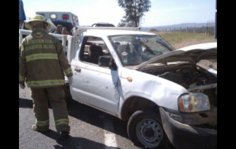 Jalisco | Al parecer un tráiler le cerró el paso a una camioneta, hay varios lesionados Un muerto en volcadura en autopista a Zapotlanejo Al parecer un tráiler le cerró el paso a una camioneta, hay varios lesionados Por: EL INFORMADOR 15 de febrero de 2014 - 19:24 hs Al lugar acudieron elementos de la Unidad Estatal de Protección Civil y Bomberos de Jalisco. ESPECIAL / GUADALAJARA, JALISCO (15/FEB/2014).- Una volcadura ocurrió en el kilómetro 6 de la Autopista Zapotlanejo - Guadalajara con varias personas lesionadas, donde estuvo involucrada una camioneta Nissan de tipo estaquitas, placas de circulación JS 89762 de Jalisco. El conductor de nombre José Farias Pérez de 36 años informó que un trailer le cerró el paso, lo que provocó que su automotor se volcara, eyectando las personas que viajan en la caja de su camioneta. Paramédicos brindaron las primeras atenciones pre hospitalarias a cinco lesionados en estado grave, quienes fueron trasladados por la UEPCBJ a la Cruz Roja Zapotlanejo para su mejor atención. Tres personas más resultaron lesionadas en estado leve. Sobre la cinta asfáltica se encontró el cuerpo sin vida de uno de los ocupantes del automotor, quien respondía al nombre de Martín Sifuentes Conchas de 45 años. Su cuerpo fue entregado al Servicio Médico Forense en espera de ser reclamado por sus familiares. Temas Seguridad Accidentes Carreteras de Jalisco Recibe las últimas noticias en tu e-mail Todo lo que necesitas saber para comenzar tu día Registrarse implica aceptar los Términos y Condiciones