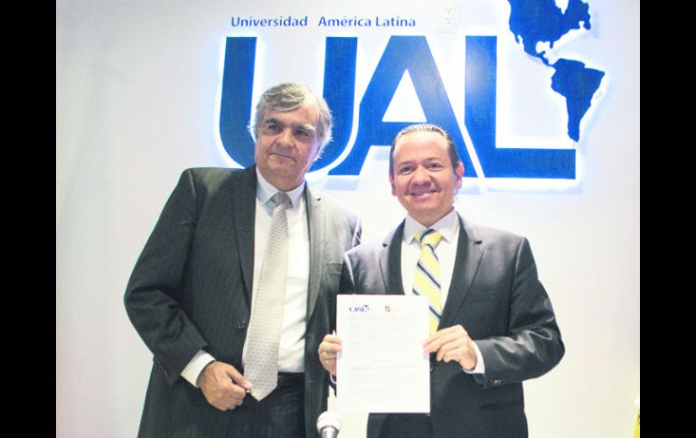 GUADALAJARA, JALISCO (09/AGO/2016).- Como ejemplo de la unión de esfuerzos para que los alumnos de Derecho tengan mejor capacitación y profesionalización sobre los retos que impone el nuevo sistema penal acusatorio adversarial, la Universidad América Latina (UAL) y el Instituto de Justicia Alternativa del Estado de Jalisco (IJA) firmaron un convenio de colaboración, con el que se pretende actualizar los temas referentes al sistema de justicia en Jalisco.Encabezaron el acuerdo José Antonio Mendoza Lujambio, rector de la UAL y Pedro Carvajal Maldonado.Durante el acto protocolario se expusieron tres conferencias y un conversatorio donde autoridades involucradas con la reciente reforma judicial dieron conocer pormenores del nuevo esquema, el cual se caracteriza por respetar los derechos de la víctima, los del ofendido y del imputado.Daniel Espinoza Licón, juez Primero de Control Oral del Tribunal de Enjuiciamiento del VI Distrito Judicial de Ciudad Guzmán; Javier García González, director de Defensoría de Oficio en el Penal de Puente Grande y Enrique Chanon Rosas, juez designado en el Distrito Primero con sede en Tonalá, Jalisco, coincidieron que el nuevo sistema de juicios orales se traduce en un procedimiento abreviado en el que la víctima y acusado se benefician a través de un proceso pronto y claro en el que se garantiza la confianza y la confidencialidad.Al evento acudió Francisco Burguete Morales, director de la coordinación de Juzgados Municipales, así como maestros, directivos y alumnos de la UAL.