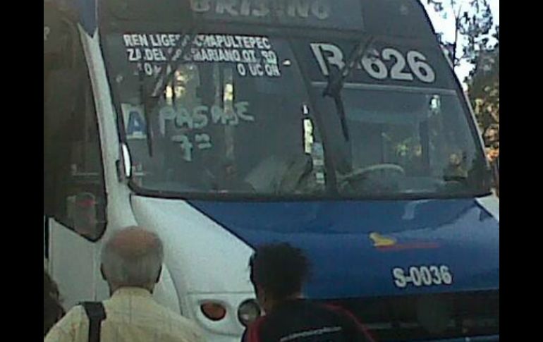Jalisco | Se niegan a pagar los siete pesos que algunos camiones cobraron esta mañana Usuarios se rebelan a tarifa del transporte público Usuarios se niegan a pagar los siete pesos que algunos camiones cobraron esta mañana Por: EL INFORMADOR 2 de abril de 2013 - 10:48 hs Algunos clientes del tranporte urbano rehúsan pagar siete pesos por el servicio. / GUADALAJARA, JALISCO (02/ABR/2013).- Usuarios del transporte público se rebelaron a la tarifa de siete pesos, que algunos camiones cobraban.Aunque esta mañana la tarifa amaneció un peso por encima del cobro normal, unos cuantos clientes se rehusaron a pagar ésta. Fue el caso de José López Rodríguez, quien al llegar a su destino, Plaza del Sol, bajó quejándose del transporte.“Yo no le di siete pesos, le pagué lo justo: seis pesos. No merecen siete pesos porque nos tratan y manejan como animales”, expuso. Mónica García ni enterada estaba del incremento y al bajar del camión en Lázaro Cárdenas, a la altura del Mercado de Abastos, comentó: “Ni me di cuenta que estaban cobrando siete pesos. Apenas que me bajé vi el letrero pintado en el camión que dice ‘pasaje siete pesos’, pero yo nada pagué seis y me senté”. A otros no les quedó más que pagar lo siete pesos que aumentaron, pero se quejaron del servicio. En unos momentos, a las 12:00 horas, Movimiento Ciudadano detallará, a través de una rueda de prensa, la suspensión que consiguió en contra del aumento. Temas Aumento transporte público Transporte Público Vialidad EL TEMA INFORMADOR Lee También ¿Y la ampliación de la Línea 1? Cuando las cosas se hacen bien Jóvenes golpean piñata de Salinas Pliego; exigen pague sus impuestos Detienen a cuatro jóvenes armados con fusiles automáticos en Sinaloa Recibe las últimas noticias en tu e-mail Todo lo que necesitas saber para comenzar tu día Registrarse implica aceptar los Términos y Condiciones