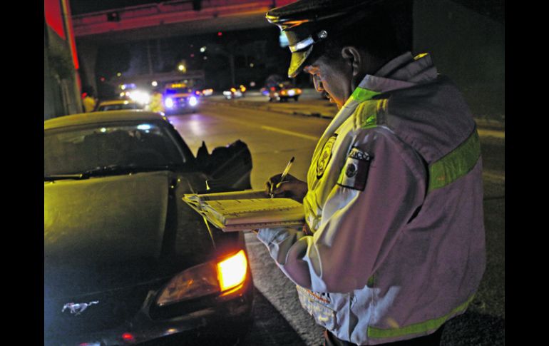 Jalisco | Han aplicado más de seis mil pruebas de alcoholímetro Van 150 conductores sancionados por alcoholemia Durante los operativos de la Secretaría de Vialidad se ha enviado al Ministerio Público a 23 automovilistas Por: EL INFORMADOR 24 de diciembre de 2012 - 03:09 hs Mayor control. Los operativos se instalan de manera aleatoria en diferentes puntos de la ciudad y se cubren en tres turnos. / GUADALAJARA, JALISCO (24/DIC/2012).- La Secretaría de Vialidad y Transporte (SVyT) ha sancionado, del 14 al 22 de diciembre, a 150 automovilistas por alcoholemia tras los operativos realizados durante la temporada decembrina. En total SVyT ha puesto a 23 conductores a disposición del Ministerio Público (MP). Asimismo, 40 vehículos han sido remitidos al corralón porque sus conductores rebasaron los límites de alcohol permitidos, y cuatro más por otras infracciones. En los 219 puestos de control instalados en distintos puntos de la Zona Metropolitana de Guadalajara (ZMG) por la SVyT, se han revisado un total de 11 mil 453 coches y realizado seis mil 218 pruebas de alcoholímetro a automovilistas. El pasado 22 de diciembre se instalaron 25 puestos de control, en los cuales se inspeccionaron mil 619 autos y 838 pruebas de alcoholímetro se llevaron a cabo por parte de elementos de Vialidad. Esto arrojó como resultado que 18 conductores fueran sancionados por alcoholemia, de los cuales seis fueron puestos a disposición del MP. Por su parte, nueve carros fueron remitidos al depósito. EL DATOVolantas decembrinas El pasado 14 de diciembre se pusieron en marcha las volantas de alcoholímetro en diferentes puntos de la ciudad, los cuales permanecerán hasta el 6 de enero. Los operativos serán permanentes durante este periodo y se realizarán en tres turnos por parte de personal de la Secretaría de Vialidad. Temas Operativos especiales de vialidad Vialidad SVyT Alcoholímetro Lee También Horarios y afectaciones viales por marchas de HOY en CDMX El conflicto maicero Marchas HOY CDMX: afectaciones viales, de este 20 de octubre Atienden cerca de 28 mil percances viales con protocolo de choques lamineros Recibe las últimas noticias en tu e-mail Todo lo que necesitas saber para comenzar tu día Registrarse implica aceptar los Términos y Condiciones