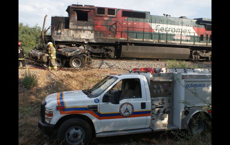 Jalisco | Tres maquinistas más que viajaban en la locomotora resultaran con graves lesiones Violento choque sobre vías del tren deja como saldo dos muertos El fuerte impacto provocó que dos personas que viajaban en el trailer salieran disparadas de la cabina y fallecieran instantáneamente Por: EL INFORMADOR 11 de junio de 2010 - 19:48 hs A causa del accidente la circulación en la vía del tren quedó imposibliltada. ESPECIAL / CIUDAD GUZMÁN, JALISCO (11/JUN/2010).- Un accidente en el cruce de la carretera Libre Guadalajara - Ciudad Guzmán con las vías del tren a la altura de Techaluta deja como saldo dos muertos y tres heridos. Un violento choque en el que un camión tipo trailer intentó ganarle el paso al tren que arrastraba 40 vagones de carga, justo en el cruce mencionado, el impacto entre la locomotora y el camión se produjo a la altura de la cabina del tractor, por lo que la caja, que se encontraba vacía se desprendió pero el chasis del trailer fue arrastrado por la locomotora aproximadamente 800 metros del sitio del impacto hasta detenerse. El fuerte impacto provocó que dos personas que viajaban en el trailer salieran disparadas de la cabina y fallecieran instantáneamente, se trata de dos adultos, aun no identificados. Ambos vehículos se incendiaron y tres maquinistas que viajaban en la locomotora resultaran con graves lesiones y quemaduras. El incendio consumió completamente los restos del camión accidentado que se trata de un trailer de la marca Volvo en color blanco con placas 043EK-9. A causa del accidente la circulación en la vía del tren quedó imposibliltada, por lo que luego de la atención de la emergencia personal de Ferromex realizó tareas para la reactivación de la vía. Se contó además con la colaboración de personal de la Unidad municipal de Protección Civil, así como de la Dirección de Seguridad Pública de Teocutatlán. Temas Seguridad Accidentes con muertes en Jalisco Ciudad Guzmán Lee También Choque en la colonia Aldama Tetlán deja dos lesionados Policía de Zapopan realiza cinco detenciones en una semana Lluvias dejan 29 muertos en un día en México Clima en Ciudad de México hoy: el pronóstico para el sábado 11 de octubre de 2025 Recibe las últimas noticias en tu e-mail Todo lo que necesitas saber para comenzar tu día Registrarse implica aceptar los Términos y Condiciones