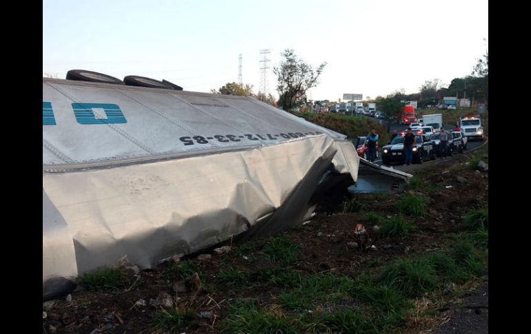 GUADALAJARA, JALISCO (19/JUN/2017).- La volcadura de un trailer complicó está mañana la circulación en la carretera Guadalajara - Acatlán, además dejó como saldo un lesionado.De acuerdo con Salomón Molina, primer comandante de Bomberos Tlajomulco, informó que una llamada al número de emergencias 911 los alertó sobre la emergencia. A la altura del kilómetro 40 en la carretera Guadalajara - Acatlán encontraron volcado sobre un costado, un tráiler que transportaba poliuretano.Al sitio también acudieron paramédicos municipales de Tlajomulco que apoyaron al cuerpo de bomberos con el rescate y atención médica al conductor del vehículo, que fue trasladado al puesto de socorros de Villa Corona. Según informes preliminares el chófer, único lesionado por el percance, presentó una posible fractura en el brazo derecho además de varias lesiones en la parte superior del cuerpo, se informó que las heridas no significaban riesgo alguno para su vida.No se dieron detalles acerca de las posibles causas del percance. Al momento ya se realizan maniobras para retirar los restos del vehículo que todavía dificultan la circulación por esta vía.