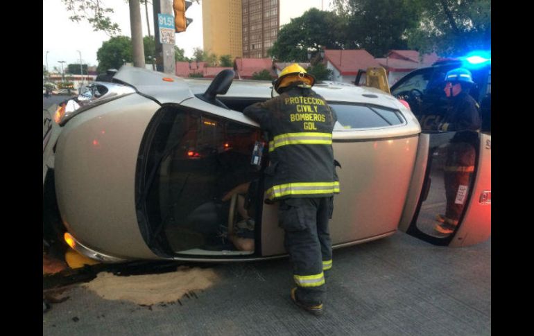 GUADALAJARA, JALISCO (06/JUN/2017).- La volcadura de un vehículo particular se registró la mañana de este martes en la colonia Moderna.La Unidad de Protección Civil y Bomberos Guadalajara informó del percance ocurrido en el cruce de la Calzada Independencia Sur y la Calzada González Gallo, en Guadalajara.En el lugar, una mujer de aproximadamente 42 años perdió el control de su vehículo y terminó volcado sobre su costado izquierdo.Fue necesario el apoyo de los bomberos para extraer a la mujer que quedó atrapada dentro del automóvil, luego de esto fue trasladada por servicios médicos municipales a las instalaciones de la Cruz Verde Ernesto Arias para su atención.Debido a que se presentó el derrame de aceites y líquidos peligrosos, los bomberos realizaron también el saneamiento del área para evitar accidentes mayores.El servicio quedó a cargo del Ministerio Público quien se encargará de determinar las causas del percance.