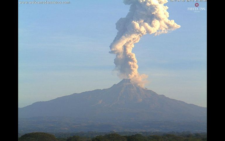 CIUDAD DE MÉXICO (03/ENE/2017).- El Volcán El Colima emitió esta mañana una fumarola de 1.5 kilómetros de altura con moderado contenido de ceniza, informó el coordinador Nacional de Protección Civil, Luis Felipe Puente Espinosa. La emanación del coloso ubicado en los límites de los estados de Jalisco y Colima ocurrió a las 07:50 horas de este martes con dirección hacia el sureste. "#Exhalación del #VolcándeColima a las 07:50 horas con una altura de 1,500 metros con dirección al sureste con moderado contenido de ceniza", informó el funcionario de la Secretaría de Gobernación en su cuenta de Twitter. En caso de caída de ceniza, la población debe cubrir la boca con un pañuelo húmedo, limpiar ojos y garganta con agua pura, cerrar ventanas o cubrirlas y permanecer lo más posible dentro de la casa. Además de tapar tinacos y otros depósitos de agua para que no se ensucien, cubrir coladeras de patios y azoteas para evitar que se tape el drenaje, cubrir aparatos, equipos y automóviles para que no se deterioren ni rayen.