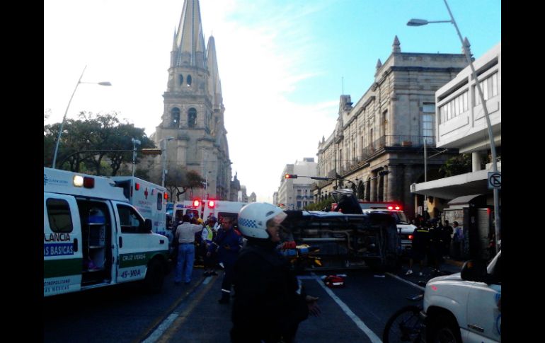 Jalisco | Sólo un carril de Sur a Norte de la avenida está abierto a la circulación Vuelca ambulancia en Alcalde e Independencia Una volcadura de una ambulancia sobre avenida Alcalde e Independencia deja como saldo al menos cuatro personas lesionadas Por: EL INFORMADOR 28 de febrero de 2013 - 07:51 hs Presumen que el conductor de una camioneta fue el causante de la volcadura. / GUADALAJARA, JALISCO (28/FEB/2013).- Una ambulancia se volcó sobre avenida Alcalde e Independencia minutos después de las 08:00 horas de la mañana de este jueves tras fuerte choque contra una camioneta que transportaba maíz; debido al incidente sólo se puede circular por un un carril de la arteria, en sentido Sur a Norte, por lo que hay tráfico cargado en la zona. La ambulancia venía de San Miguel El Alto y llevaba dentro a cuatro personas: dos paramédios, un paciente y su familiar, pero tras el percance los paramédicos fueron los que resultaron con heridas de mayor gravedad y fueron llevados a la Cruz Verde, mientras que el paciente y su familiar al Hospital Civil, señaló un agente de policía que ayudaba en las acciones de rescate. El conductor del vehículo que presuntamente ocasionó el incidente ya se encuentra detenido por elementos de Vialidad. En el lugar permanecen Bomberos, Ministerio Público y paramédios. El incidente ha causado revuelo en el primer cuadro tapatío entre los curiosos que pasan por la vía. El tránsito en el zona Centro de la ciudad se encuentraba altamente congestionado. Alrededor de las 9:45 horas, la Avenida Alcalde fue finalmente abierta a la circulación. Temas Accidentes Vialidad Avenida Alcalde Recibe las últimas noticias en tu e-mail Todo lo que necesitas saber para comenzar tu día Registrarse implica aceptar los Términos y Condiciones