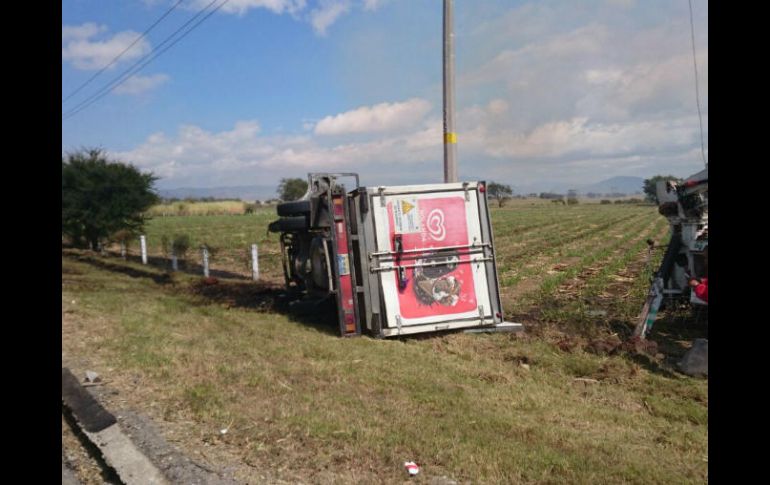 GUADALAJARA, JALISCO (16/FEB/2017).- Una camioneta de cinco toneladas volcó y ocasionó un leve incendio al borde de la autopista en sentido Colima - Guadalajara en el kilómetro 102.La emergencia fue atendida por personal de la Comandancia de Ciudad Guzmán, en cooperación con Protección Civil de Tuxpan, Protección Civil de Zapotiltic y Policía Federal.Según el reporte de las autoridades el vehículo, propiedad de una empresa de helados, golpeó un poste de electricidad y quedó volcado sobre el lado derecho. Debido al impacto con el poste, inició un incendio en un pastizal, así como en parte de la cabina y caja seca de la camioneta.El hombre lesionado fue trasladado por una ambulancia de Tecalitlán a una clínica del IMSS en Ciudad Guzmán para recibir la atención médica necesaria.No se reportó ninguna afectación en la circulación de la autopista.