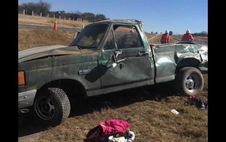 GUADALAJARA, JALISCO (26/ENE/2017).- Cinco personas, incluyendo dos niños, sufrieron heridas de gravedad al volcar la camioneta en que viajaban en Los Altos de Jalisco, sobre la autopista Aguascalientes-León, informó La Unidad Estatal de Protección Civil de Jalisco.El accidente ocurrió esta tarde en el kilómetro 45 de la vía. El vehículo volcado es una pick up Ford 150 modelo 1990 que, al parecer, sufrió una pinchadura en una llanta que provocó el accidente.En el lugar recibieron atención médica inicial las cinco víctimas: el conductor presentaba lesiones de leves a regulares, pero sus cuatro acompañantes tenían lesiones de mayor gravedad: un varón de un año de edad, una niña de siete meses y dos mujeres adultas.Todos los heridos, que al parecer venían de Michoacán y viajaban con rumbo a Ciudad Juárez, fueron llevados al Hospital Santa Sofía de Lagos de Moreno, tras recibir ayuda de diversos grupos de paramédicos.