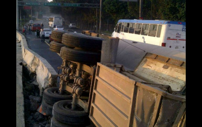 Jalisco | Tras el percance se derivaron dos choques; no se reportan personas heridas Vuelca tráiler y colapsa carretera a Chapala El vehículo de carga pesada contenía aproximadamente 34 toneladas de alimento para aves Por: EL INFORMADOR 23 de noviembre de 2012 - 08:27 hs Personal de Vialidad informó que el percance ocurrió alrededor de las 06:00 horas de hoy. / GUADALAJARA, JALISCO (23/NOV/2012).- El desprendimiento de un contenedor, con aproximadamente 34 toneladas de alimento para aves, provocó el colapso por más de seis horas en la Carretera Chapala. De acuerdo con los reportes de las autoridades, minutos después de las 06:00 horas de este viernes, la góndola o el doble semi remolque que era jalado por un tractocamión se desprendió del mismo y volcó, provocando grandes daños materiales en el muro de contención. El tráiler circulaba en el sentido de ingreso hacia la ciudad, cuando a la altura del Fraccionamiento Revolución de le desprendió el semi remolque y volcó, dejando regado el producto que llevaba, además del desprendimiento de los ejes del mismo remolque. Tras el percance, tres automotores más resultaron dañados, sin embargo, solamente se reportó una persona levemente lesionada. Aunque se presume que el conductor del carguero intentó darse a la fuga, el tractocamión que arrastraba al semiremolque quedó abandonado a unos 400 metros, aproximadamente, de donde se originó el percance. Del chofer nada se supo, pues logró darse a la fuga. Desde el momento del percance y hasta la hora de que las autoridades retiraron al carguero, en ambos sentidos de la vía se generó un gran caos vehicular. Vialidad reporta dos choques tras la volcadura Tras el suceso se derivaron dos choques sobre la vía: el primero se presentó entre tres particulares, justo a unos metros de la volcadura; en un segundo participaron un camión de carga pesada y una pipa de agua. En ambos accidentes no se reportan personas heridas. La Secretaría de Vialidad y Transporte informó que la Avenida Lázaro Cárdenas presentó intensa carga de automotores, luego del accidente. Temas Vialidad Aeropuerto de Guadalajara Carretera Chapala SVyT Recibe las últimas noticias en tu e-mail Todo lo que necesitas saber para comenzar tu día Registrarse implica aceptar los Términos y Condiciones