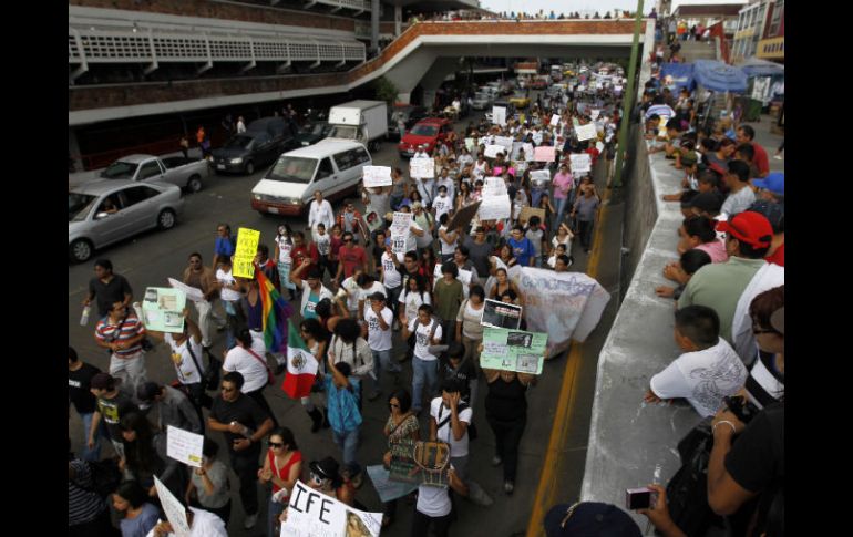 Jalisco | El movimiento salió a las calles para decir que vigilarán los comicios de este domingo #YoSoy132GDL se dice listo para sobrevivir a las elecciones A menos de 12 horas de comenzar la jornada electoral, el movimiento #YoSoy132 en Guadalajara salió a las calles para decir que vigilarán los comicios de este domingo Por: EL INFORMADOR 30 de junio de 2012 - 19:44 hs GUADALAJARA, JALISCO (30/JUN/2012).- Le cambiaron la vida a las campañas electorales y quieren sobrevivir al primero de julio. A menos de 12 horas de comenzar la jornada electoral, el movimiento #YoSoy132 en Guadalajara salió a las calles para decir que vigilarán los comicios de este domingo y, además, comenzarán a articular un movimiento permanente por la democratización de los medios de comunicación. Oscar Juárez Mora, vocero de la mesa de marchas del movimiento #YoSoy132Gdl, dijo que "tenemos una idea clara. Seguiremos con nuestras demandas gane quien gane el primero de julio". Esta marcha, que aglutinó poco más de 600 personas, sorprendió a los vecinos del Oriente de la ciudad. Elvira Hernández, quien vive en una vecindad de la avenida Javier Mina, salió de su casa para ver pasar la marcha. "Pues está bien, que los muchachos hagan algo por este país", dijo y después añadió que estaba sorprendida porque "pues es que acá nunca hay de estas cosas (manifestaciones)". Cuando el contingente pasó por la zona comercial de San Juan de Dios, los clientes eran quienes tenían cara de curiosidad. Todos veían a los muchachos gritar "hay que votar, hay que votar, si no votamos la chingada va a llegar". Cuando pasaron por el edificio administrativo del poder legislativo, en Juárez y Ramón Corona, el grito al unísono "esos son, esos son, los que chingan la nación". En esta ocasión no gritaron consignas contra ningún candidato por respeto a la veda electoral. Listos para cuidar la elección y acampar Después de la marcha, el contingente llegó al parque Revolución, donde hicieron un festival cultural. Dentro de las consignas que se gritaron estuvieron los "voto por voto, casilla por casilla, 132 los tiene en la mira" y también el "70 años de dictadura, hay que mandarlos a la basura". A nivel nacional, el movimiento ha declarado que este domingo cuidarán de la elección al desplegar tres mil observadores electorales. En Jalisco, el movimiento no tiene contabilizado el número exacto, pero el viernes por la noche, durante la tercera asamblea, se creó un núcleo de observadores electorales. Además, el lunes a las 1:32 de la tarde comenzará la acampada en el Parque Revolución. Ahí, los integrantes del movimiento ocuparán por un lapso de 132 horas el parque, en espera de la validación de la elección y también para discutir las propuestas concretas que impulsarán una vez que se haya definido el ganador de la elección. EL INFORMADOR / OMAR GARCÍA Temas IFE Elecciones Jalisco 2012 #YoSoy132 Lee También Clausuran centro de rehabilitación en Tonalá por posibles delitos ¿Será obligatorio presentar la CURP biométrica para trámites escolares? Presentan a los cinco finalistas del Premio Adolf B Horn Hombre es condenado por abuso sexual cometido contra su hijastro Recibe las últimas noticias en tu e-mail Todo lo que necesitas saber para comenzar tu día Registrarse implica aceptar los Términos y Condiciones