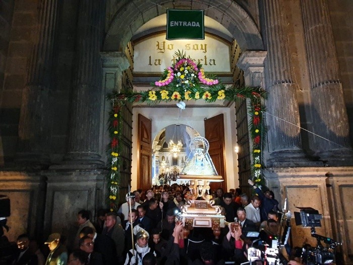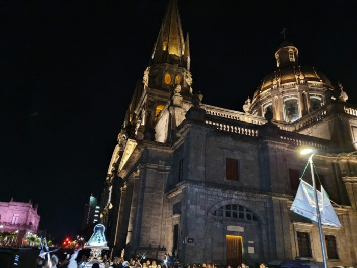 Tras oficiar la misa de las 05:00 de la mañana por parte del cardenal emérito Juan Sandoval Íñiguez, en la Catedral, la Virgen de Zapopan partió rumbo a la Basílica en la Villa Maicera.Durante la ceremonia, el cardenal solicitó a los feligreses pedir a la Virgen por todos los males que los aquejan, de los que destacó la epidemia del dengue por la que atraviesa la Entidad.También advirtió que hay quienes amenazan con quitarles la libertad al "permitir el homicidio de los más inocentes", en alusión al aborto."Por eso tenemos muchas cosas que pedirle a la Virgen Santísima".Tras descender a la Virgen del nicho, los asistentes en la Catedral rompieron en aplausos para despedirla.A las 06:16 horas salió el contingente por Alcalde hacia Juárez, donde la esperaba el vehículo que la llevaría a la Basílica de Zapopan. La ruta, después de Juárez, es Vallarta, Unión y hacia Patria, vialidad por la que llegará a la Basílica, después de 9.2 kilómetros de trayecto.A lo largo de los nueve kilómetros de trayecto de la Romería de la Virgen de Zapopan se estima que millones de personas asistan a este evento religioso, informó Bomberos Guadalajara. El saldo hasta la mañana, según la Policía municipal, era de cero incidencias de seguridad. Solamente Bomberos informó que se reportaron cuatro menores de edad extraviados, mismos que ya fueron entregados a sus familiares. Hacia las 07:30 de esta mañana, las escoltas que anteceden el paso del vehículo de la Virgen habían llegado a Chapultepec, donde se aglutinaba los espectadores.OA