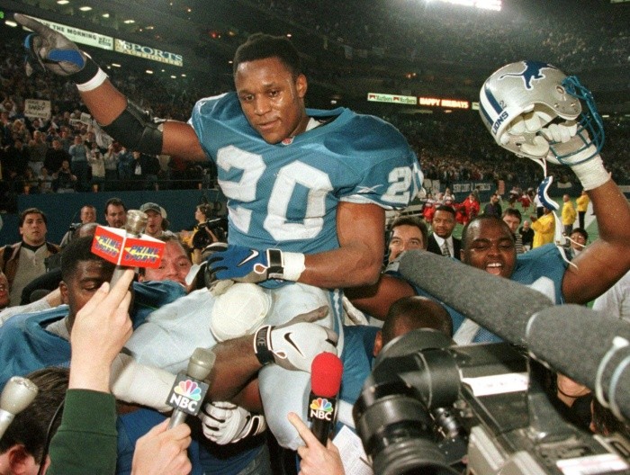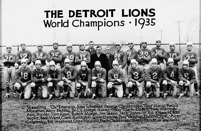 La historia de los Lions de Detroit se extiende por poco más de nueve décadas, cuando la franquicia nació en otra ciudad bajo otro nombre.La NFL era una Liga en pañales cuando en 1928 nació la franquicia de los Spartans de Portsmouth, en Ohio, equipo que se nutrió de jugadores de equipos semiprofesionales, pero que vio la luz dentro de la Liga cuando la construcción de un estadio en dicha ciudad quedó completada.En Portsmouth, la franquicia tuvo un relativo éxito llegando a un juego de desempate en 1932 el cual perdió frente a los Bears de Chicago, cuando toda la Liga estaba compuesta de una sola conferencia de 10 equipos y el campeón se definía por posición en el standing, pero los siguientes años no fueron tan buenos para el equipo, lo que motivó a George Richards, ejecutivo de la radio, a pagar en 1934 ocho mil dólares por los derechos de la franquicia, mudándola a Detroit, donde le cambió el nombre a Lions.El éxito en Detroit fue inmediato, pues apenas en su primer año en la ciudad, los Lions conquistaron el título de la NFL, algo que se volvió a repetir más de una década después, en los años cincuenta, en la cual los Lions fueron un referente gracias a su enconada rivalidad con los recién llegados Browns de Cleveland.Sin embargo, después de un polémico suceso en 1958, la moneda en el destino de los Lions se invirtió, pues desde su último título, esta franquicia ha sido una de las menos exitosas en los 60 años más recientes, coleccionando más vergüenzas que satisfacciones, acumulando pocas apariciones en Postemporada, pero siempre quedando lejos de ser un verdadero contendiente por el título.Barry SandersCuando la franquicia se ubicaba en Ohio, el logo era el nombre del equipo en letras negras y oro, pero tras el cambio a Detroit en 1934, el equipo no tuvo un logo hasta 18 años después, cuando apareció un jugador de futbol americano junto a un león, corriendo ambos en la misma dirección. En 1961 se renueva la imagen, quitando al jugador y dejando solamente la silueta del león, con un par de franjas verticales, una en azul rey y otra en plata en el fondo. En 1970 aparece la silueta del felino saltando, aunque sin ser detallado, lo cual cambia en 2009, cuando se presenta una imagen más agresiva. La versión más reciente de este logo data de 2016.En su segunda campaña en Detroit, los Lions logran llegar hasta el Juego de Campeonato de la NFL, donde enfrentan a los Giants de Nueva York, derrotándolos por marcador de 26-7 para lograr su primer título. Detroit no alcanzaría la Postemporada en las 16 campañas posteriores.En su regreso a unos Playoffs tras 16 años de ausencia gracias al trabajo del coach Buddy Parker y Bobby Layne en los controles, los Lions derrotan a Los Ángeles en la Primera Ronda y en el Juego de Campeonato se encuentran con los Browns de Cleveland, a los que derrotan 17-7 para conseguir su segundo título. Los siguientes dos años repiten rival en el duelo por el campeonato, ganando en 1953, pero perdiendo en 1954. En 1957 Detroit vuelve a ser campeón al dar cuenta de Cleveland por tercera ocasión.Un día después del segundo juego de la temporada, George Wilson, coach de los Lions, le informa a Bobby Layne que ha sido enviado a Pittsburgh a cambio de Earl Morrall y dos selecciones colegiales. Cuenta la leyenda que al vaciar su locker en Detroit, Layne dijo que los Lions no ganarían nada en los siguientes 50 años, en la que se conoce como “La Maldición de Bobby Layne”.La junta administrativa de los Lions aprueba a William Clay Ford (nieto de Henry Ford) como dueño mayoritario de la franquicia, luego de que dos años atrás, aprovechando la lucha de poder entre un par de dueños anteriores, Ford, quien era accionista minoritario del equipo, pagó 4.5 millones de dólares a 144 accionistas más para tomar control total de la organización.Detroit gana su primer juego de Playoffs en casi 34 años luego de derrotar en la Ronda Divisional a los Cowboys de Dallas por marcador de 38-6. A la fecha, esa es la última victoria en Postemporada que tiene esta franquicia.En el 50 aniversario de “La Maldición de Bobby Layne”, los Lions pierden 31-21 frente a los Packers de Green Bay para convertirse en el primer equipo en la historia de la Liga en terminar una campaña regular de 17 semanas con marca de 0-16. En esa campaña, Detroit ocupó los últimos sitios estadísticos tanto en ofensiva como en defensiva en toda la Liga.