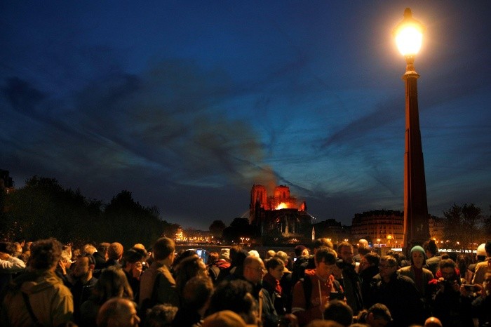 Una multitud de parisinos y turistas estupefactos, algunos de ellos llorando y otros rezando, miraban con horror en el centro de París el lunes cómo las llamas devoraban la emblemática catedral de Notre Dame.Exclamaciones y gritos de "Dios mío" empezaban a oírse hacia las 19:50 horas cuando parte de la aguja se vino abajo, mientras las llamas se extendían por todo el techo.Segundos más tarde, las cámaras de cientos de teléfonos móviles captaban como el resto de la aguja se derrumbaba, en medio de gritos de estupor."París está desfigurada. La ciudad nunca será como era antes", declaró Philippe, un trabajador en comunicación de unos 30 años, que pasó en bicicleta después de que un amigo le avisara del incendio que se declaró en la catedral.La policía trataba de alejar a los transeúntes de las dos islas del Sena, incluida la Isla de la Ciudad, el barrio parisino donde se ubica la catedral de estilo gótico, el monumento histórico emblemático de la religión cristiana y de la historia de París.Pero una multitud de espectadores seguía intentando acercarse, dificultando el tráfico mientras se arremolinaban en los puentes de piedra que conducen a la isla.Otra mujer que se acercó estaba demasiado afectada -las lágrimas resbalaban por sus gafas- para hablar con los periodistas. "Se acabó, no podremos volver a verla", dijo Jerome Fautrey, un hombre de 37 años que se desplazó a mirar el incendio. "Ahora necesitamos saber cómo ha ocurrido. Con todo lo que está pasando en el mundo ¿por qué Notre Dame? Quizás es un mensaje divino", agregó.Un agente de policía que llegaba por uno de los puentes se dio media vuelta boquiabierto y exclamó: "Dios mío"."Es increíble, nuestra historia se está haciendo humo", dijo Benoit, de 42 años, que llegó al lugar en bicicleta para asistir a la tragedia, resumiendo el sentimiento general de conmoción.Sam Ogden, de 50 años, llegó de Londres el lunes con su marido, sus dos hijos adolescentes, y su madre. Habían viajado a París específicamente para ver Notre Dame, como parte de una gira alrededor del mundo durante años para visitar lugares históricos."Esto es realmente triste (...) la cosa más triste que he presenciado y visto en mi vida", contó Ogden.Su madre, Mary Huxtable, de 73 años, dijo: "Esto [Notre Dame] estaba en mi lista de cosas para ver. Ahora nunca entraré".A poca distancia se encontraba otra familia británica, también de Londres."Es devastador", comentó Nathalie Cadwallader, de 42 años, que había llegado a París dos días antes con su marido y sus dos hijos para una estancia en la capital francesa de una semana."Es horrible que esto haya pasado, además de todo lo que ha vivido París recientemente", agregó en referencia a los atentados yihadistas de 2015.Su familia había planeado visitar Notre Dame el lunes pero lo cambiaron por la Torre Eiffel. Pensaban ir a la catedral el martes.En la plaza de Saint-Michel, a pocos metros, vehículos de emergencia, bomberos y coches de policía pasaba con las sirenas resonando.La multitud se aglutinaba a orillas del Sena, donde caían cenizas, tomando fotos con sus teléfonos en las que se veían la nube de humo amarillo, las cenizas, el pánico, la tristeza. "Tiene mil años", explicaba con calma un hombre a su hija de unos diez años.JM