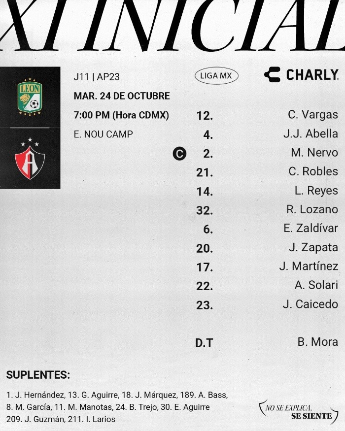 Deportes | León vs Atlas • Momentos destacados • Jornada 11 • Liga MX Atlas visita el Estadio Nou Camp para enfrentar a León en un duelo pendiente de la Jornada 11 los rojinegros buscarán cambiar su situación tras una racha de tres derrotas Sergio Alejandro Velázquez 24 de octubre de 2023 - 18:40 hs LEÓN1 ‒ 1ATLAS Fin del partido Atlas inició el primer tiempo con la ventaja, marcando con un gol de Jordy Caicedo, sin embargo, en la segunda mitad no pudieron mantener el dominio y el partido fue empatado. Lo que aconteció despues fue un ir y venir frenético del balón entre ambos equipos que no pudieron sumar otro tanto y terminaron con el marcador empatado a un gol. Es así como Atlas logra terminar con su racha de derrotas, pero se quedan deseosos de una victoria. 94' Ambos equipos buscan el desempate Jugada tras jugada, Atlas y León intercambian el balón, pero no suman al marcador 90' Se suman 7 minutos al segundo tiempo. 86' Ambos equipos juegan con precaución El partido avanza con un ritmo disminuido, se intercambia el balón constantemente y no se concretan las jugadas para deshacer el empate. 81' Más cambios en el Atlas Se van Solari y Zaldivar y llegan a la cancha Manotas y Bass. 70' ¡Goooooooooooooooooooooool de León! Tras el analisis del VAR se despejan las dudas y se confirma la anotación de Alfonso Alvarado y el empate para el León. ¡¡¡G⚽⚽⚽L!!! Se empató el encuentro. �� Alvarado remató de cabeza y puso 1-1 el marcador en León. ��������#LigaBBVAMX | ��#NoTeLoPierdas pic.twitter.com/l9yMQsJ0IB — Liga BBVA MX (@LigaBBVAMX) October 25, 2023 65' Llega el primero de León, pero en posición adelantada El árbitro va al VAR para analizar la jugada. 62' Mora hace modificaciones Tras su amonestación se va Jordy Caicedo y también José Lozano para que entren Gaddi Aguirre y Eduardo Aguirre. 56' Caen dos amarillas para Atlas Los ánimos se empiezan a calentar y el árbitro decide sacar dos amarillas para bajar la furia del Atlas para Jordy Caicedo y Edgar Zaldivar. 51' ¡León se vuelve a quedar corto! León no consigue igualar el marcador ni con un doble disparo, con la barrera de Camilo Vargas y una gran falla de Brian Rubio, el León continúa sin anotaciones. Comienza el segundo tiempo Fin del primer tiempo Los Panzas Verdes aprovechan los minutos adicionales para hacer sus jugadas más peligrosas del partido, sin embargo, comenzarán el primer tiempo sin ninguna anotación a favor. 45' Se suman 4 minutos al primer tiempo 39' Atlas insiste en conseguir el segundo León juega muy cerca de su portería y se muestran superados por la ofensiva rojinegra. 36' Jeremy Márquez se suma al cuadro rojinegro Mora hace el cambio para cubrir la ausencia de Martínez. 33' Martínez sale lesionado del campo Jaziel Martínez sale del campo tras un encontronazo, sin embargo, sale caminando con su propio pie. 25' ¡Gooooooooooooooooool de Atlas! Jordy Caicedo hace avanzar el balón y esquiva a Cota para llevarse el primer tanto para los rojinegros. ¡¡¡G⚽⚽⚽L!!! Jordy Caicedo remató dentro del área, para poner en ventaja a los Rojinegros. ��#LigaBBVAMX | ��#NoTeLoPierdas pic.twitter.com/8G2HlLMzfo — Liga BBVA MX (@LigaBBVAMX) October 25, 2023 23' Llega la primera amarilla para León Ángel Mena es quien se lleva la primera amonestación del partido. 21' Se desarrolla el partido sin muchos momentos de peligro León y Atlas intercambian el balón sin lograr generar muchas jugadas de riesgo, 16' ¡Atlas se queda a nada del primer gol! Los rojinegros logran concretar una buena jugada y un excelente tiro, pero Rodolfo Cota logra desviar el balón que impacta directo en el palo. 7' Primer intento de los Panzas Verdes El partido inicia con muchos cambios de posesión, pero León consigue su primer disparo a portería que es frenado por Camilo Vargas. Comienza el partido El árbitro da el silbatazo y se empieza a jugar en el Estadio Nou Camp Alineación de León Alineación de Atlas Temas Atlas Panzas Verdes de León Futbol Mexicano Liga MX Lee También Mundial Sub-20: EU golea a Italia y enfrentará a Marruecos NFL: Sorpresiva derrota de los Eagles ante Giants Futbol hoy 10 de octubre de 2025: ¿Dónde ver los partidos en vivo? Atlas aprovecha la pausa para recuperar elementos clave