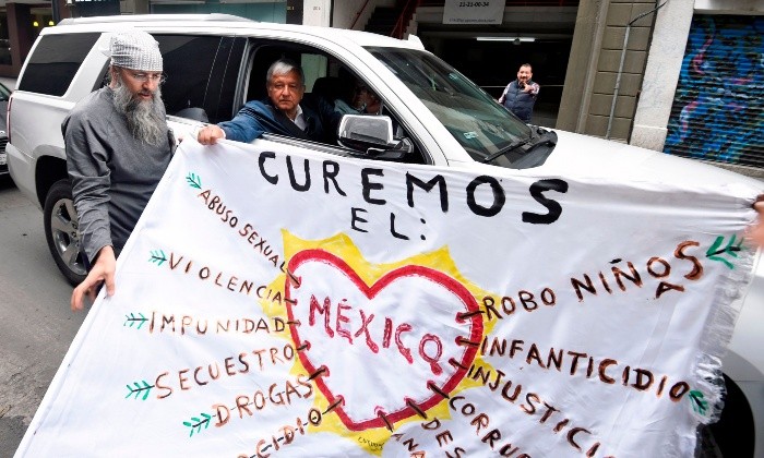 Andrés Manuel López Obrador, candidato presidencial por la coalición Juntos Haremos Historia, afirmó que le gustaría que el padre Alejandro Solalinde presida la Comisión Nacional de Derechos Humanos (CNDH), aunque aclaró que eso no lo permite la ley.En el museo de Memoria y Tolerancia, al participar en el Diálogo por la Paz y la Justicia organizado por la CNDH y el Movimiento por la Paz, Justicia y Dignidad, el tabasqueño también sostuvo que le gustaría que el activista Javier Sicilia -sentado en el público-, estuviese en la comisión."Me gustaría, nada más que la ley no lo permite y ellos no aceptan, que el padre Solalinde fuera el encargado de los derechos humanos y que Javier estuviese en la comisión, ayudándonos para encontrar a los desaparecidos"."Quiero el apoyo de gente buena, gente con buenos sentimientos, nosotros en esencia lo que buscamos es que se lleve a la práctica la máxima filosófica que viene de lejos desde antes del cristianismo, queremos que se aplique el amor al prójimo, luchamos por el bienestar material y el bienestar del alma. Queremos justicia, queremos felicidad, queremos amor", dijo.Ante organizaciones sociales y familiares de víctimas, así como personalidades como Alejandro Gertz Manero, el empresario Marcos Fastlitch, entre otros, el candidato por Movimiento Regeneración Nacional (Morena), Partido del Trabajo (PT), Partido Encuentro Social (PES) dio un decálogo para atacar la violencia y la inseguridad, en el que propone un diálogo conjunto para elaborar un plan para pacificar al país.Entre los puntos adelantó que, de ganar las elecciones, va a fortalecer la Comisión Nacional de Búsqueda de Desaparecidos con presupuesto y personal, así como aplicar la ley de víctimas y de desaparición forzada. En este tema, sostuvo, participarán familiares de los afectados por la violencia."Habrá facilidades del gobierno para que se investigue sin restricción y que se haga investigación completa sobre los derechos humanos", indicó.Al cuestionarlo sobre la fiscalía anticorrupción, se dijo en contra de reformar el artículo 102 constitucional, para que el presidente pueda mandar las ternas para nombrar al fiscal."Se le da más importancia al 102, que nos quiten la posibilidad de que nosotros propongamos una terna para nombrar al fiscal anticorrupción, no es con el afán de dominarlo todo, sino que la mafia del poder tenga injerencia y se siga simulando", expresó.Asimismo se dijo abierto a un debate, sin tabúes, sobre la legalización del consumo de la canabis.OA