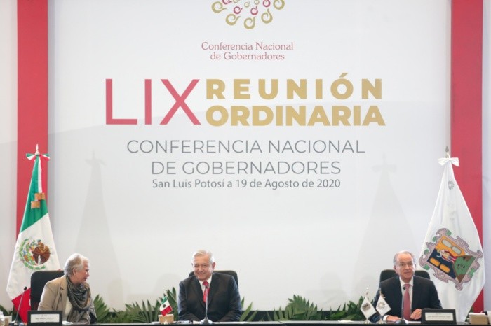 Tras una reunión en San Luis Potosí, Andrés Manuel López Obrador y gobernadores acordaron analizar el pacto fiscal para una mejor distribución de los recursos federales a favor de los Estados. “Se analizará la Ley de Coordinación Fiscal, pero con objetividad, transparencia y diálogo”, subrayó la secretaria de Gobernación, Olga Sánchez Cordero, quien fue la portavoz del Presidente.El gobernador de Michoacán, Silvano Aureoles, explicó que el actual esquema de distribución “es centralista, discrecional… y mantiene amarrados a los Estados”, lo que coloca a los municipios en una situación de quiebra. Por cada peso, recordó, el Gobierno federal se queda con 80 centavos y sólo 20 se distribuyen a Entidades. “Estamos proponiendo formalmente que los porcentajes sean 70-30, en lugar de 80-20. Propongo formalmente que, en el marco de la discusión del nuevo presupuesto para 2021, se modifiquen los porcentajes de distribución (de los recursos)”.Ante esto, Arturo Herrera, secretario de Hacienda, aceptó la creación de un grupo de trabajo entre autoridades federales y mandatarios estatales. También ofreció que los Gobiernos locales refinancien sus deudas con Banobras.Otro acuerdo fue el compromiso de Hacienda para que el Fondo de Estabilización de los Ingresos de los Estados sea entregado mensualmente y no trimestralmente, como se hacía, ante la crisis sanitaria y económica.Tras meses de tensión y choques por la gestión de la pandemia y la crisis económica, gobernadores lograron ayer el compromiso del Presidente Andrés Manuel López Obrador (AMLO) para revisar el pacto fiscal (que determina los recursos para los 32 Estados) para sortear los problemas financieros.La “foto de familia” de la reunión sirvió de metáfora sobre las diferencias que han aflorado durante la crisis sanitaria entre el Gobierno federal y los mandatarios estatales. Según la secretaria de Gobernación, Olga Sánchez Cordero, enlace entre el Presidente y los gobernadores, el encuentro celebrado en San Luis Potosí sirvió para acercar posiciones y “construir una estrategia conjunta” frente a la crisis sanitaria y económica.Aseguró que el Presidente se comprometió para apoyar la “reestructuración de la deuda” de los Estados y pagar “puntualmente” los recursos federales que les corresponden. “Se analizará la Ley de Coordinación Fiscal”.La crisis económica derivada de la pandemia, con un desplome histórico del Producto Interno Bruto (PIB) de 18.9% en el primer semestre, llevó a varios Estados del Norte del país y gobernados por la oposición a levantar la voz contra el pacto fiscal, vigente desde hace una década.Los gobernadores de Jalisco, Nuevo León, Coahuila, Chihuahua, Tamaulipas, Durango y Michoacán, que se autodenominaron la Alianza Federalista, exigen reformar el sistema a fin de aportar menos recursos a la Federación y conservarlos para atender la pandemia.Jaime Rodríguez, gobernador de Nuevo León, llegó al encuentro con pocas expectativas, asegurando que las reuniones de la Conferencia Nacional de Gobernadores (Conago) “nunca han servido”.Pero a la salida del encuentro publicó un mensaje más conciliador en Twitter: “Los gobernadores que conformamos la Alianza Federalista nos hemos unido para colaborar y ayudarle a México”.A favor y en contraA unas horas de que se realizara el encuentro entre integrantes de la Conferencia Nacional de Gobernadores y el Presidente López Obrador, en el Centro de Convenciones de San Luis Potosí, manifestantes dividieron posturas a favor y en contra del jefe del Ejecutivo. Mientras los integrantes del Frente Nacional Ciudadano lanzaron consignas contra López Obrador, otro grupo le demostró su apoyo. Los inconformes, entre ellos integrantes del Sindicato de Telefonistas, entre otros, se colocaron sobre los carriles del bulevar Antonio Rocha Cordero, donde los ánimos se incrementaron cuando líderes del Frente Nacional Ciudadano y los simpatizantes del Presidente sólo intercambiaron palabras.La Alianza Federalista, que integran 10 gobernadores, pidió al Presidente reconsiderar el acuerdo que privilegia la producción de energía eléctrica con base de fuentes fósiles sobre las energías renovables. El gobernador de Jalisco indicó que la cancelación del sector privado en las energías renovables limita y ancla al país, por lo que rechazan “comprometer el futuro del país con las energías fósiles”. Enfatizó que ese acuerdo afecta las inversiones en proceso para impulsar la energía eólica y solar, entre otras no contaminantes.Por eso pidió la creación de un convenio para que los Estados y la Federación compartan funciones en materia energética cuando los planes de inversión de la Comisión Federal de Electricidad (CFE) y de Petróleos Mexicanos (Pemex) sean insuficientes, respecto a las necesidades de crecimiento y de los planes de desarrollo de cada Entidad.Explicó que el convenio sería para regular, supervisar y facilitar la operación de sistemas eléctricos aislados, gestionar evaluaciones de impacto social y ambiental, simplificar la puesta en servicio de los proyectos y establecer los instrumentos económicos fiscales o los incentivos de mercado para los proyectos de generación basados en las fuentes limpias y renovables.Parte de la “gran discusión interna” y del análisis que realiza el Gobierno es cómo tener energía a precios bajos, pero también cómo honrar los contratos”, explicó el jefe de la Oficina de la Presidencia de la República, Alfonso Romo. Dijo que, como en todas las familias, hay puntos de vista diferentes, “también eso sucede en el Gobierno, en donde se busca erradicar la corrupción, pero al mismo tiempo se debe dar seguridad jurídica al sector privado”. Por ello, afirmó que si bien es necesario corregir los hechos de corrupción del pasado, también deben ver hacia el futuro. Recordó que hace unas semanas, durante la visita de López Obrador 