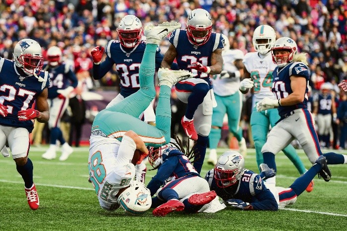 El camino al Super Bowl en la Conferencia Nacional pasará por San Francisco, algo que no ocurría desde 1997. Pero por centímetros estuvo a punto de desviarse a otra ciudad.Los 49ers conquistaron el título divisional en el Oeste y la primera posición de la Conferencia en los Playoffs, al imponerse 26-21 sobre los Seahawks de Seattle, gracias a que el linebacker novato, Dre Greenlaw, frenó a Jacob Hollister en cuarta y gol, apenas a unos centímetros de la zona prometida.San Francisco no ganaba la corona divisional desde 2012. Esta vez aseguró además la ventaja de local durante la Postemporada en la Nacional al silenciar a un público de Seattle, donde los Seahawks buscaban ganar la división y festejar así el regreso de Marshawn Lynch a sus filas.Pero hizo falta revisar la repetición en video antes de que San Francisco pudiera celebrar su título.Seattle tuvo la posesión en su yarda 27 con 2:27 minutos por disputarse y en desventaja por cinco puntos. Russell Wilson condujo a los Seahawks a la yarda uno de San Francisco y, en cuarta y 10, conectó con John Ursua para un avance de 11 yardas, hasta la uno.Wilson azotó el balón, pero se sancionó a Seattle por un retraso de juego en segunda oportunidad, cuando imperó la confusión sobre si Lynch ingresaría en el partido. Relegado a la yarda seis, Wilson envió dos pases incompletos.En cuarta y gol, Hollister atrapó un pase bajo, pero fue derribado por Greenlaw. La repetición confirmó que Hollister cayó antes de que el balón llegara a la línea, y los 49ers desataron la celebración en casa ajena. Los Patriots de Tom Brady y Bill Belichick jamás han llegado al Super Bowl tras una campaña en la que hayan debido disputar la Ronda de Comodín. Miami envió al duelo de Comodín a Nueva Inglaterra, después de que Ryan Fitzpatrick lanzó un pase de anotación 24 segundos restantes en el juego que los Dolphins ganaron 27-24.Mecole Hardman devolvió 104 yardas una patada de salida para anotar y los Chiefs de Kansas City derrotaron 31-21 a los Chargers de Los Ángeles para desplazar a Nueva Inglaterra del segundo puesto de la Conferencia Americana. Con esta victoria, Kansas City se ganó descansar la primera semana de la Postemporada.Andy Dalton lanzó para un touchdown y corrió para otro en su despedida como un quarterback franquicia de los Bengals de Cincinnati, que pusieron fin a una de sus peores temporadas, con un triunfo de 33-23 sobre los Browns de Cleveland, quienes horas después despidieron a Freddie Kitchens como entrenador en jefe.Derrick Henry y los Titans se colaron en la Postemporada, y lo hicieron corriendo. Tennessee superó 35-14 a unos Texans de Houston que dieron descanso a algunos de sus titulares, y pactó un interesante enfrentamiento de primera ronda de los Playoffs con Nueva Inglaterra. Henry corrió para 211 yardas, además de tres touchdowns.Dak Prescott lanzó cuatro pases de touchdown y los Cowboys de Dallas vencieron 47-16 a los Redskins de Washington, pero quedaron eliminados de los Playoffs luego de la victoria de Filadelfia sobre Nueva York. Los Cowboys perdieron el control de su destino hacia Playoffs al caer la semana pasada ante los Eagles.Carson Wentz y los Eagles se han colado en los Playoffs gracias a un grupo de jugadores que comenzaron la temporada en el equipo de suplentes. Boston Scott corrió para tres anotaciones en la segunda mitad, y Filadelfia derrotó 34-17 a los Giants de Nueva York para conquistar el título de la División Este de la Conferencia Nacional.Mason Crosby conectó un gol de campo de 33 yardas sin tiempo en el reloj para guiar a los Packers de Green Bay a un triunfo por 23-20 sobre los Lions de Detroit, con lo cual aseguraron el descanso en la primera semana de los Playoffs. Los Packers estuvieron en desventaja por dos anotaciones en la segunda mitad.JL