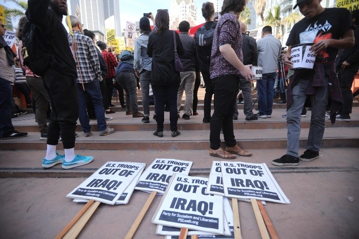 Miles de personas se echaron este sábado a la calle en 70 ciudades de EU para pedir la salida de las tropas estadounidenses de Medio Oriente y rechazar el ataque que ordenó el presidente Donald Trump para acabar con la vida del poderoso comandante iraní Qasem Soleimaní.En Lafayette Square, frente a la Casa Blanca, unas trescientas personas se reunieron en el acto central de las protestas.Entre los manifestantes se encontraban la actriz Jane Fonda, que tiene una gran historia de activismo y en los últimos meses ha estado protestando en Washington contra la crisis climática."El movimiento climático y el movimiento pacifista deben convertirse en un único movimiento", dijo Fonda, de 82 años, frente a una multitud que la aplaudía y vitoreaba."La gente más joven debería saber que todas las guerras que se han luchado desde que nacieron, todas, han sido por petróleo (...) No podemos perder más vidas, matar a más personas y arruinar el medio ambiente por petróleo y combustibles fósiles", clamó la actriz.El discurso de Fonda, vestida con un abrigo y gorro negros, fue la antesala de una decena de activistas que, a través de un altavoz, pidieron acabar con el "imperialismo" de EU en el mundo.Entre los participantes, había niños, ancianos y muchos jóvenes que mostraron pancartas que ridiculizaban a Trump, estaban adornadas con flores y símbolos hippies o pedían la retirada de los entre 60 mil y 70 mil soldados estadounidenses desplegados actualmente en Oriente Medio."Trump, la gente dice: no queremos guerra con Irán. Saca las tropas estadounidenses de Iraq", rezaba con letras negras y rojas una de las pancartas principales.Los convocantes de las manifestaciones en todo EU fueron, entre otros, ANSWER Coalition y Code Pink, dos grupos pacifistas que ganaron popularidad después de la invasión de Iraq en 2003.Las ciudades que salieron a las calles incluyeron Nueva York y Miami, donde la participación fue más baja que en Washington.En Nueva York, la protesta fue convocada en la icónica Times Square, junto a las oficinas de reclutamiento del Ejército estadounidense que se alojan en el centro de la plaza, en el conocido monumento de luces rojas, azules y blancas que representan la bandera del país.En las últimas horas, Nueva York ha reforzado su seguridad en lugares clave ante el miedo de que Irán tome represalias por la muerte en un ataque estadounidense en Bagdad de Soleimaní, comandante de la Fuerza Quds de los Guardianes de la Revolución iraní, y del vicepresidente de la Multitud Popular iraquí, Abu Mahdi al Mohandes.Muestra de ese aumento de la seguridad fueron la decena de policías armados que hoy se apostaron junto a los manifestantes, que se contaban por decenas.La presidenta de una de las organizaciones presentes, "Veterans for peace" (Veteranos por la paz), Susan Schnoll, exmilitar de la Marina, dijo a Efe que esperaba que más gente se una a la causa y expresó temor porque, a su juicio, "Estados Unidos está al borde de la guerra con Irán"."Esto es un juego para el presidente Trump", criticó, señalando que el mandatario ha utilizado la Administración que dirige para hacer "lo que él quería", en referencia al ataque a Soleimaní.Entretanto, en Miami, una veintena de personas se reunieron en el monumento de la Antorcha de la Amistad, en el Parque Bayfront, en el centro de la ciudad, para pedir la salida de EU de Iraq y mostrar pancartas con mensajes como: "envíen a los chicos a la universidad, no a la guerra".Mientras las manifestaciones se sucedían en el país, Trump guardó silencio en Twitter, donde se limitó a presumir de sus altos niveles de popularidad entre los republicanos, y jugó al golf cerca de su club privado de Mar-a-Lago, en West Palm Beach (Florida), donde se encuentra pasando las Navidades.Quien sí estuvo muy ocupado fue el secretario de Estado, Mike Pompeo, que ha pasado las últimas horas al teléfono tratando de tranquilizar a los aliados de EU.Este sábado, Pompeo conversó con el primer ministro israelí, Benjamín Netanyahu; el príncipe heredero de Baréin, Salman bin Hamad al Jalifa; y su homólogo turco, Mevlut Cavusoglu, informó el Departamento de Estado. En todas las llamadas, Pompeo defendió la actuación de EU.En términos generales, la Administración está a la espera de ver cuál será la respuesta de Irán, que podría tomar diferentes formas, incluidos ciberataques.Teherán y Washington, que no tiene relaciones diplomáticas desde 1979, han vivido numerosas crisis desde que Trump ordenara en 2018 la salida de EU del acuerdo nuclear de 2015.La escalada de tensión actual está considerada como la más grave y ha despertado el temor a una guerra.JM