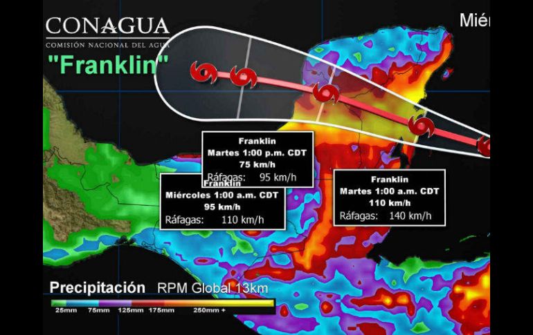 CIUDAD DE MÉXICO (07/AGO/2017).- La Secretaría de Marina Armada de México informó la noche de este lunes que se activó el Plan Marina en su Fase de Prevención en los estados de Quintana Roo, Yucatán, Veracruz y sur de Tamaulipas, con el fin de auxiliar a la población civil, a consecuencia de las intensas lluvias que se provocarán en esas entidades debido a la tormenta tropical “Franklin".En un comunicado, explicó que los mandos navales de las posibles áreas afectadas, "se encuentran preparados con personal, vehículos y unidades de superficie para llevar a cabo tareas de evacuación y salvaguardar la vida humana".Destaca que en las próximas horas esta tormenta tropical provocará fuertes lluvias en esos estados.Los mandos navales, asegura, se encuentran en constante coordinación con personal de Protección Civil y autoridades de los tres niveles de gobierno, realizando recorridos de vigilancia para apoyar a la población que lo requiera, principalmente las que viven en zonas de riesgo.Se prevé que "Franklin" impacte Quintana Roo la madrugada del martes.
