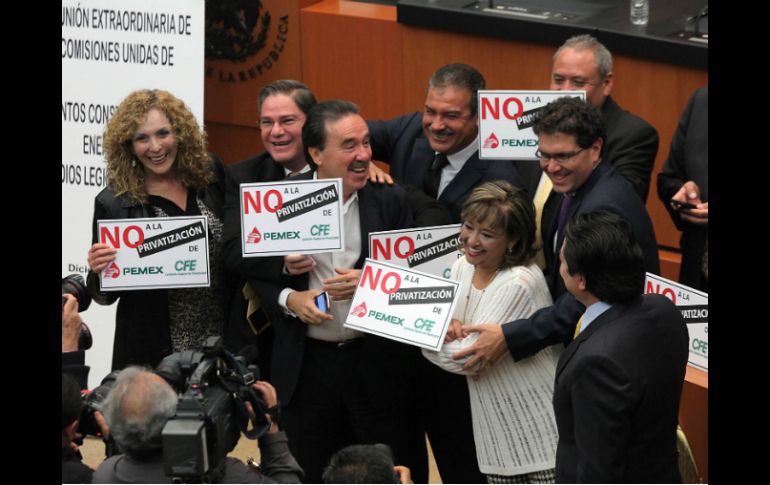 México | Votan por las reformas a los artículos 24 y 25 Constitucionales Acuerdan sacar al Sindicato del Consejo de Pemex Votan por las reformas a los artículos 24 y 25 Constitucionales Por: SUN 9 de diciembre de 2013 - 17:01 hs Vista de la toma de Tribuna por parte del PRD en medio de los trabajos de reforma a la ley en materia energética. SUN / CIUDAD DE MÉXICO (09/DIC/2013).- Senadores negociadores de la reforma energética confirmaron que el PRI y el Gobierno Federal aceptaron que el Sindicato no ocupe ninguno de los lugares en el Consejo de Administración de Petróleos Mexicanos ( Pemex). Aceptaron que les costó trabajo convencerlos, pero garantizaron que ningún trabajador será afectado en sus derechos laborales. Este cambio al dictamen se incluyó en el Artículo 24 transitorio de la reforma, que incluso ya fue votado en lo general la tarde de este lunes. Buscan garantizar eficacia para Pemex y CFE Por otro lado, los cambios al artículo 25 constitucional, que es parte de la reforma energética, fueron aprobados en la fase de discusión particular, y quedó a salvo para formar parte del dictamen que será enviado al pleno. Por mayoría de votos del PRI, PAN y PVEM, las 13 reservas que presentó el frente de PRD y PT fueron desechadas una a una, luego de exposiciones de los oradores de izquierda, sin que, por el formato de la reunión, fueran comentadas sus expresiones por sus contrapartes. En el artículo 25 se introduce el concepto de "empresas productivas del Estado", estatus que será adquirido por Petróleos Mexicanos (Pemex) y Comisión Federal de Electricidad ( CFE). Señala el precepto que la ley establecerá "las normas relativas a la administración, organización, funcionamiento, procedimientos de contratación y demás actos jurídicos que celebren las empresas productivas del estado". La ley establecerá el régimen de remuneraciones, para garantizar la eficacia en Pemex y CFE, así como la eficiencia, honestidad, productividad y transparencia, con base en las mejores prácticas". También fue adicionado el criterio de sustentabilidad que tendrán las empresas de los sectores social y privado de la economía. De inmediato, el debate entró a la discusión de las reservas sobre las reformas al artículo 27 de la Constitución, punto en el que se inscribieron 17 oradores del PRI y PT. Temas Reforma Energética Pemex Cámara de Senadores Poder Legislativo Recibe las últimas noticias en tu e-mail Todo lo que necesitas saber para comenzar tu día Registrarse implica aceptar los Términos y Condiciones