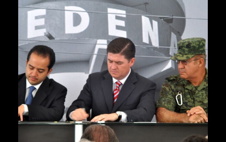 México | La Segob y Gobierno estatal firman convenio de colaboración hasta 2012 Alargan presencia de fuerzas federales en NL El titular de la Segob, Alejandro Poiré, el gobernador Rodrigo Medina firman convenio de colaboración en materia de seguridad hasta el cierre de 2012 Por: SUN 1 de diciembre de 2011 - 18:31 hs Poiré signó con el gobernador Rodrigo Medina el convenio de colaboración de apoyo del Gobierno Federal a la entidad. EL UNIVERSAL / MONTERREY, NUEVO LÉON (01/DIC/2011).- Los más de seis mil 500 elementos militares se mantendrán en las calles de Nuevo León hasta que concluya el sexenio del Presidente Felipe Calderón Hinojosa, aseguró el secretario de Gobernación, Alejandro Poiré. En gira de trabajo por Nuevo León, Poiré signó con el gobernador Rodrigo Medina de la Cruz el convenio de colaboración de apoyo del Gobierno Federal a la entidad, el cual se estipula, vencerá el 31 de diciembre del 2012. Las operaciones de personal militar, de Marina y federal se mantiene en la entidad desde el mes de febrero del 2007 cuando entro en vigor el operativo "Nuevo León Seguro"; luego del incremento de acciones delictivas cometidas por el crimen organizado. A principios del 2011 se incrementaron las ejecuciones, balaceras y aun la comisión de delitos del fuero común; por lo que se enviaron cerca de dos mil militares, marinos y federales a reforzar el combate al crimen organizado. Dicha presencia se mantendrá hasta el cierre del 2012 según el acuerdo entre el gobierno federal y estatal signado esta tarde en la capital de Nuevo León. Es de destacar que el titular de la Segob recorrió las instalaciones del Campo Policial 1 Fuerza Civil; en donde pudo escuchar de los preventivos la nueva forma de operación de los cuerpos de seguridad en la entidad. Envuelto en un fuerte dispositivo de seguridad en la que se incluyeron francotiradores, el titular de Gobernación se desplazo en vehículo junto con el Gobernador a la comunidad. Temas Sedena Estados Nuevo León Alejandro Poiré Romero Lee También KIVA Inversión inmobiliaria integral presenta Atriva, esencia viva Angelina Jolie planea dejar EU por diferencias con gobierno de Trump Trump dijo merecer Nobel de la Paz por haber "terminado con siete guerras" ¿Trump ganaría el Nobel de la Paz? Veteranos del Comité de premiación responden Recibe las últimas noticias en tu e-mail Todo lo que necesitas saber para comenzar tu día Registrarse implica aceptar los Términos y Condiciones