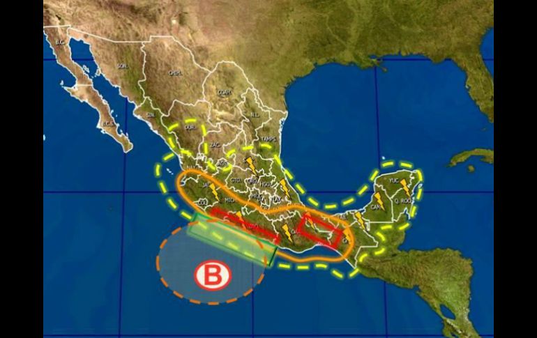 México | La baja presión presenta potencial para convertirse en ciclón en las próximas 24 horas Alertan sobre desarrollo ciclónico en el Pacífico La baja presión presenta potencial para convertirse en ciclón en las próximas 24 horas Por: NTX 8 de junio de 2014 - 15:09 hs CIUDAD DE MÉXICO (08/JUN/2014).- El Servicio Meteorológico Nacional ( SMN) informó que la baja presión que mantiene en vigilancia en el Océano Pacífico, presenta 50 por ciento de potencial de desarrollo ciclónico para las próximas 24 horas. Detalló que a las 13:00 horas, tiempo del centro del país, la baja presión se localizó casi a 180 kilómetros al sur-suroeste de Zihuatanejo, Guerrero; 205 kilómetros al sur-sureste de Lázaro Cárdenas, Michoacán y a 240 kilómetros al suroeste de Acapulco, Guerrero. En un comunicado, indicó que el sistema presenta vientos máximos sostenidos de 35 kilómetros por hora y rachas de hasta 55 kilómetros por hora con movimiento de 12 kilómetros por hora al noroeste, además de intensa nubosidad que favorecerá lluvias intensas (de 75 a 150 milímetros) en áreas de Jalisco, Colima, Michoacán, Guerrero y Oaxaca. También habrá lluvias muy fuertes, de 50 a 75 milímetros, en regiones de Puebla, y fuertes de 25 a 50 milímetros en el Distrito Federal, Estado de México, Nayarit, Morelos y Tlaxcala, así como vientos de hasta 50 kilómetros por hora y oleaje elevado de hasta tres metros de altura en las costas del Pacífico centro y sur. El Servicio Meteorológico Nacional reiteró que mantendrá bajo vigilancia la evolución y desarrollo de este sistema. Por lo anterior, recomendó tomar precauciones ya que podrían registrarse deslaves, deslizamientos de laderas, desbordamientos de ríos y arroyos, afectaciones en caminos y carreteras, así como inundaciones en zonas bajas y saturación de drenajes en zonas urbanas. El SMN, dependiente de la Comisión Nacional del Agua, exhorto a la población a atender los avisos de las autoridades estatales y municipales, y a consultar los avisos acerca de las condiciones meteorológicas, a través de la cuenta de twitter @conagua_clima y en las páginas de internet http://smn.conagua.gob.mx y www.conagua.gob.mx. Temas Estados Clima Tormenta tropical Recibe las últimas noticias en tu e-mail Todo lo que necesitas saber para comenzar tu día Registrarse implica aceptar los Términos y Condiciones