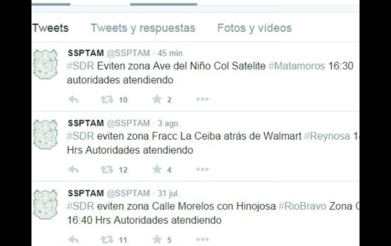 México | La Secretaría de Seguridad Pública de Tamaulipas no precisa si es un hecho violento Alertan sobre situación de riesgo en Matamoros La Secretaría de Seguridad Pública de Tamaulipas no precisa si se trata de un hecho violento Por: SUN 6 de agosto de 2015 - 16:33 hs El pasado lunes, la dependencia alertó sobre una situación de riesgo en Reynosa; más tarde informaron que se trataba de bloqueos. TWITTER / @SSPTAM CIUDAD DE MÉXICO (06/AGO/2015).- La Secretaría de Seguridad Pública de Tamaulipas (SSP) alertó sobre una situación de riesgo en el municipio de Matamoros, aunque no precisó si se trata de algún hecho de violencia. Vía Twitter, la dependencia pidió evitar la zona Ave del Niño en la colonia Satélite. "#SDR Eviten zona Ave del Niño Col Satelite #Matamoros 16:30 autoridades atendiendo" (sic), publicó la dependencia. El lunes pasado, la SSP también alertó sobre situaciones de riesgo en Reynosa. Más tarde, el Grupo de Coordinación Tamaulipas informó que el lunes 3 de agosto, en dicho municipio se registraron algunos bloqueos por parte de integrantes de un grupo delincuencial que opera en esa ciudad, en reacción a un operativo especial a cargo de elementos de la Policía Federal y Secretaría de la Defensa Nacional. Temas Operativos de Seguridad Estados Tamaulipas Lee También Pueblos Mágicos con tradiciones del Día de Muertos más cerca de Jalisco Fiscalía habría vinculado a proceso a más de 70 presuntos agresores de mujeres ¿Recibiste correo de rechazo de FIFA? Aquí te decimos cuándo es la siguiente venta Trump se reunirá con Putin para negociar fin de la guerra en Ucrania Recibe las últimas noticias en tu e-mail Todo lo que necesitas saber para comenzar tu día Registrarse implica aceptar los Términos y Condiciones