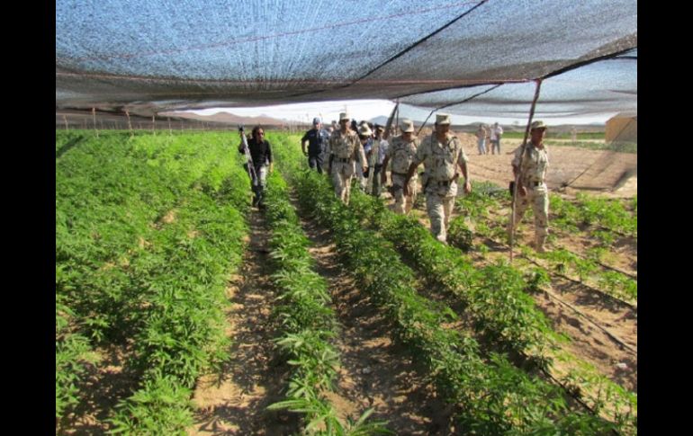 México | Los hombres permanecerán detenidos provisionalmente por 40 días en un hotel Arraigan a 58 trabajadores del mayor plantío de mariguana hallado en México Los hombres permanecerán detenidos provisionalmente por 40 días en un hotel por su probable responsabilidad en la comisión de delitos contra la salud Por: AP 18 de julio de 2011 - 23:01 hs Los hombres fueron arrestados en un pueblo cercano al lugar donde se encontró el sembradío de mariguana. ARCHIVO / TIJUANA, BAJA CALIFORNIA (19/JUL/2011).- Militares mexicanos detuvieron a 58 hombres que presuntamente trabajaban en el sembradío de mariguana de 120 hectáreas localizado la semana pasada, el más grande en la historia del país, en el estado de Baja California, informó la la Procuraduría General de la República (PGR). Los militares trasladaron en camiones bajo un fuerte operativo de seguridad "a un hotel de arraigo (detención provisional) en la ciudad de Tijuana a 58 personas por su probable responsabilidad en la comisión de los delitos contra la salud", dijo en comunicado la PGR. El Ejército localizó el martes pasado un sembradío de mariguana de 120 hectáreas, considerado por las autoridades el más grande en la historia de México, cuya incineración concluyó este lunes. Inicialmente fueron detenidos 16 hombres y el resto fueron arrestados posteriormente en los alrededores de El Rosario, un pueblo cercano al lugar donde se encontró el plantío. Los 58 hombres permanecerán detenidos provisionalmente por 40 días en un hotel, mientras el ministerio público integra las pruebas suficientes contra ellos para ponerlos a disposición de un juez. Muchos de los 58 hombres, entre 18 y 58 años, eran originarios del estado de Sinaloa, tierra de Joaquín 'Chapo' Guzmán, el narcotraficante más buscado de México y Estados Unidos, dijeron autoridades de Baja California. Temas Ejército Estados Detenidos en México Mariguana Lee También Sheinbaum descarta riesgo por crecimiento del río Pánuco en Tamaulipas México vs Corea del Sur: EN VIVO, dónde ver el partido por el Mundial Sub-17 femenil Protestan contra Trump en Estados Unidos Desfile de Alebrijes Monumentales, ruta y hora del evento HOY en CDMX Recibe las últimas noticias en tu e-mail Todo lo que necesitas saber para comenzar tu día Registrarse implica aceptar los Términos y Condiciones