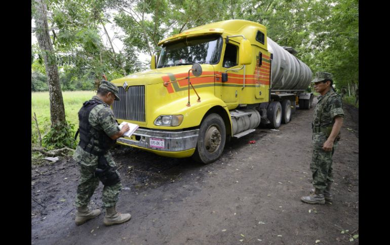 México | Elementos de la Policía estatal recuperaron el remolque cisterna con el combustible Aseguran 33 mil litros de hidrocarburo en Tabasco Elementos de la Policía estatal y Militar recuperaron el remolque cisterna con el combustible Por: SUN 17 de octubre de 2015 - 21:25 hs El tráiler y los recipientes fueron puestos a disposición de las autoridades del Ministerio Público de la Federación. NTX / CORTESÍA VILLAHERMOSA, TABASCO (17/OCT/2015).- Elementos de la Policía Estatal y Militar recuperaron este sábado en Tabasco un tráiler remolque cisterna con 33 mil litros de combustible y varios contenedores para almacenar gasolina o diésel. La recuperación de la pesada unidad ocurrió en el poblado Pejelagartero segunda sección, del municipio de Huimanguillo, lugar presumiblemente utilizado como un centro de distribución clandestino y donde se ha reportado una serie de robos de hidrocarburos. El comandante de la Trigésima Zona Militar, Agustín Radilla Suástegui, subrayó que este hallazgo es resultado de los recorridos implementados por las fuerzas armadas y corporaciones estatales y federales, con el fin de reducir la violencia y garantizar la seguridad en el estado. Informó que alrededor de este mediodía, una base de operaciones mixtas constituida por personal del Ejército, la Marina Armada de México, de la Secretaría de Seguridad Pública (SSP) y la Fiscalía General del Estado (FGE), detectó en ese punto de la geografía un tráiler color amarillo, marca International, placas de circulación 070XS4 del Servicio Público Federal, que tenía reporte de robo. En el lugar también se encontró un remolque cisterna lleno con 33 mil litros de combustible, al parecer diésel, así como varios bidones, abandonados seguramente por un grupo delincuencial que opera en esa zona del estado, reportó. Radilla Suástegui precisó que esa localidad de Huimanguillo se encuentra en un radio terrestre donde ya anteriormente se han llevado a cabo aseguramientos de más combustible de procedencia ilícita y se ha descubierto tomas clandestinas en ductos de Pemex. Puntualizó que tanto los vehículos como el hidrocarburo y los recipientes fueron puestos a disposición de las autoridades del Ministerio Público de la Federación, quienes serán las encargadas de llevar a cabo las investigaciones correspondientes. Temas Tabasco Combustible Estados Lee También Pipa cargada de combustible vuelca y explota en la autopista México-Puebla "Raymond" baja su potencia, pero tocará tierra en horas En Hidalgo, caminos destrozados complican rescates y ayuda Así se celebrará en Guanajuato el Día de Muertos Recibe las últimas noticias en tu e-mail Todo lo que necesitas saber para comenzar tu día Registrarse implica aceptar los Términos y Condiciones