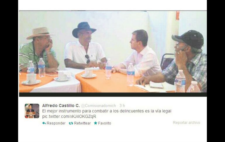 México | Reunión con Alfredo Castillo, comisionado de seguridad Autodefensas acuerdan hacer limpia al interior del movimiento En reunión con el comisionado de seguridad, reiteran que no entrarán a las zonas urbanas del Estado Por: EL INFORMADOR 7 de marzo de 2014 - 01:32 hs MORELIA, MICHOACÁN (07/MAR/2014).- Los líderes de los grupos de autodefensa de Michoacán acordaron con el Gobierno federal hacer una “limpia” de sus filas y abstenerse de ingresar a las cabeceras municipales o zonas urbanas. Los voceros de los guardias rurales, José Mireles, Estanislao Beltrán e Hipólito Mora se reunieron con el comisionado de seguridad en el Estado, Alfredo Castillo y pactaron expulsar a quienes sean ajenos al movimiento para mantener la “autoridad moral del grupo”. Paralelo a la reunión, autodefensas tomaron poblados de Tocumbo y Cotija y les exigieron a los ediles cumplir con su obligación de brindar paz. Sinembargo.mx SABER MÁSOtros acuerdos Retirar las barricadas donde ya no son necesarias debido a la presencia de las fuerzas federales. Mantener la comunicación con el Gobierno federal para dar con los líderes de los templarios. PRESENTAN A HIJO DE LA ''TUTA''MORELIA, MICHOACÁN .- El secretario de Seguridad Pública estatal, Carlos Castellanos, confirmó la detención de Luis Alfredo Aguilera Esquivel, quien dijo ser hijo de Servando Gómez Martínez, alias la “Tuta”. El joven de 23 años fue capturado en Los Reyes cuando cobraba una extorsión a un productor de aguacate en Los Reyes. Castellanos refirió que la información proporcionada por el joven está siendo utilizada en las pesquisas contra la “Tuta”, aunque por la importancia de las revelaciones se reservó los detalles. Temas Michoacán Estados Autodefensa Alfredo Castillo Lee También Instalarán en el Consejo Regulador del Tequila oficina de "oriGIn América Latina" ALERTA en Jalisco por formación de ciclón "Raymond" Esta es la última guerra que Trump resolvió, según él mismo Las guerras que Trump dice haber resuelto y por las que merece el Nobel Recibe las últimas noticias en tu e-mail Todo lo que necesitas saber para comenzar tu día Registrarse implica aceptar los Términos y Condiciones