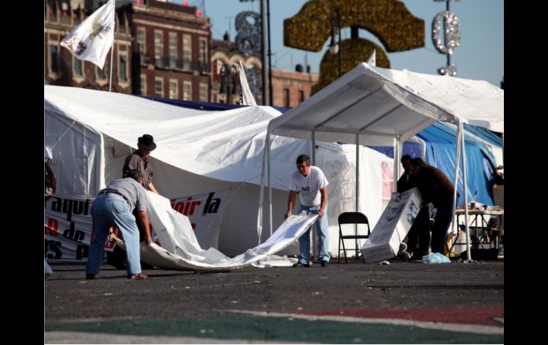 México | Se levantará el plantón que mantienen los electricistas desde marzo pasado Blake y SME alcanzan acuerdo para liberar Zócalo Se espera que en los próximos días se resuelva la situación de 16 mil electricistas que no han aceptado su liquidación Por: NTX 13 de septiembre de 2011 - 08:45 hs Integrantes del SME levantan el plantón que mantenían desde el pasado 3 de marzo en el Zócalo de la Ciudad de México. EL UNIVERSAL / CIUDAD DE MÉXICO (13/SEP/2011).- El secretario de Gobernación, Francisco Blake, y el líder del SME, Martín Esparza, alcanzaron un primer acuerdo para levantar el plantón que mantienen los electricistas en el Zócalo capitalino desde marzo pasado, con el fin de dar paso a los festejos patrios. En entrevista el jefe de Gobierno del Distrito Federal, Marcelo Ebrard, celebró la disposición de ambas partes para alcanzar acuerdos definitivos antes de noviembre próximo, en torno a la situación de 16 mil electricistas que no han aceptado su liquidación. Al término del encuentro encabezado por el secretario de Gobernación, Francisco Blake Mora, Ebrard Casaubon dijo que para ello la mesa de diálogo de 'alto nivel' sesionará semanalmente hasta noviembre. En ella, precisó, se analizará cuántos electricistas son, sus especialidades, sueldo y edades, entre otros temas, sin embargo no se abordó el tema de alguna "nota" al sindicato. 'Celebro la disposición de ambas partes, de plasmar en un documento dos puntos centrales', acotó el jefe de Gobierno, quien aclaró que en la liberación de los electricistas se acordó no alargar los procesos, esto es 'que no haya maniobras dilatorias y que se actúe de buena fe'. Al respecto, el subsecretario de Gobernación, Juan Marcos Gutiérrez, precisó que Gobernación informó que se convino con el Sindicato Mexicano de Electricistas (SME) analizar y resolver en su caso las vías que procedan sobre los trabajadores que no han aceptado su liquidación. Para tal efecto, dijo, se revisarán las propuestas que el SME ha presentado a Gobernación, 'sin perjuicio de las observaciones o contrapropuestas que el Gobierno Federal haga'. Además analizar y agilizar los procesos judiciales para la resolución de los casos penales de trabajadores electricistas, conforme a la ley, así como revisar los temas pendientes de este gremio como jubilaciones, cuotas sindicales, seguro sindical y prestaciones, entre otras. 'En este contexto, el SME se ha comprometido también a desalojar el Zócalo capitalino durante las fiestas patrias del mes de septiembre y hasta que la mesa de trabajo acordada concluya sus objetivos, esto es hasta finales de noviembre y a reserva de los resultados de la propia mesa', comentó. En su turno, Martín Esparza reiteró en el documento la disposición del gremio que encabeza para encontrar una solución de fondo al conflicto, 'apegándose en todas sus actividades al marco del libre ejercicio de las libertades democráticas consagradas en la Constitución y el respeto a derechos e integridad de terceros'. Dijo que tras varias horas de discusión 'al final la asamblea votó la firma del documento que permite sentar las bases' y en él 'se reconoce explícitamente al SME; que somos trabajadores, miembros del sindicato, que se va a revisar toda la parte que tiene que ver con la reinserción laboral y productiva de todos los que no aceptamos la liquidación'. Esparza Flores aclaró que el SME siempre ha buscado el diálogo que permita resolver el conflicto y en este marco destacó la coadyuvancia de Ebrard y del presidente de la Junta de Coordinación Política de la Cámara de Diputados, Armando Ríos Píter, en representación de la Cámara de Diputados y quien estuvo en la reunión. Además de Blake y Esparza firman el documento de dos cuartillas por parte del Gobierno Federal el secretario de Energía, Jordy Herrera Flores; el subsecretario de Ingresos de la Secretaría de Hacienda, José Antonio González Anaya; y el director general del Servicio de Administración y Enajenación de Bienes (SAE), Sergio Hidalgo Portillo. Por el SME signan el documento los secretarios del Exterior, José Humberto Montes de Oca; del Trabajo, Eduardo Bobadilla Zarza; el de Economía y Estadística, Pablo Rodríguez Alvarez, así como el prosecretario de Jubilados, José Antonio Almazán González. Temas Estados SME Marcelo Ebrard Francisco Blake Mora Lee También "Raymond" baja su potencia, pero tocará tierra en horas En Hidalgo, caminos destrozados complican rescates y ayuda Así se celebrará en Guanajuato el Día de Muertos Lluvias dejan 37 muertos en cuatro estados de México Recibe las últimas noticias en tu e-mail Todo lo que necesitas saber para comenzar tu día Registrarse implica aceptar los Términos y Condiciones