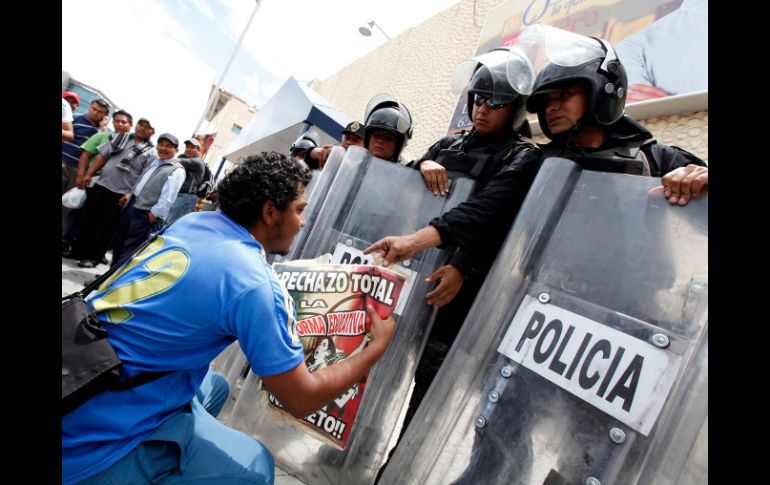 México | La policía capitalina se suma a las fuerzas federales para contener las marchas ''Blindan'' San Lázaro por marcha de la CNTE La policía capitalina se suma a las fuerzas federales para contener las marchas Por: SUN 28 de agosto de 2013 - 10:14 hs Los integrantes de la CNTE se han manifestacion en sedes legislativas, televisoras, el Zócalo capitalino y embajadas, entre otros. NTX / CIUDAD DE MÉXICO (28/AGO/2013).- Policías federales, junto con elementos del Distrito Federal, resguardaron las inmediaciones de la Cámara de Diputados en San Lázaro. Sobre avenida Eduardo Molina, a un costado de la estación terminal de la Línea 4 del Metrobús, se observó la presencia de los policías federales, quienes portaron escudos para proteger las instalaciones del palacio legislativo. Mientras que en la calle de Sidar y Rovirosa, se apostaron elementos del cuerpo de granaderos de la Secretaría de Seguridad Pública del Distrito Federal (SSP-DF). Hoy EL UNIVERSAL publicó que el secretario de Gobernación, Miguel Ángel Osorio Chong, y el jefe de Gobierno del Distrito Federal, Miguel Ángel Mancera, acordaron coordinarse y sumar a la policía capitalina a las fuerzas federales para contener las marchas de la Coordinadora Nacional de Trabajadores de la Educación ( CNTE), que en los últimos días han bloqueado vialidades en la capital del país. Movilizaciones del CNTE MARCHAS HORA: 10:00 LUGAR: Zócalo Capitalino, Plaza de la Constitución s/n, Col. Centro Histórico, Del. Cuauhtémoc. Rumbo a la Residencia Oficial de Los Pinos Calz. Chivatito s/n Col. San Miguel Chapultepec, Del. Miguel Hidalgo. RUTA: Circuito Plaza de la Constitución, Monte de Piedad, Tacuba, Av. Hidalgo, Av. Paseo de la Reforma sentido poniente y Calzada Chivatito hasta llegar al inmueble. HORA: 16:00 LUGAR: Monumento a La Revolución Plaza de la República s/n Col. Tabacalera Del. Cuauhtémoc. Rumbo al Zócalo Capitalino Plaza de la Constitución s/n Col. Centro Histórico, Del. Cuauhtémoc. RUTA: Av. Plaza de la República, Av. Juárez, Eje Central Lázaro Cárdenas, 5 de Mayo hasta llegar a Plaza de la Constitución. *** CONCENTRACIONES HORA: 11:00 LUGAR: Terminal 1 Del. Aeropuerto Internacional de La Ciudad de México Cap. Carlos León s/n, Col. Peñón de los Baños, Del. Venustiano Carranza. HORA: 11:00 LUGAR: Secretaría de Comunicaciones y Transportes (SCT) Av. Xola esq. Eje Central s/n, Col. Narvarte, Del. Benito Juárez. HORA: 11:00 LUGAR: Secretaría de Desarrollo Social, Av. Paseo de la Reforma #116 Col. Juárez, Del. Cuauhtémoc. HORA: Durante el Día. LUGAR: 16 Delegaciones del Distrito Federal *** PLANTÓN Continúa.... LUGAR: Zócalo Capitalino EVENTOS MASIVOS CELEBRACIÓN MENSUAL DE SAN JUDAS TADEO. LUGAR: Iglesia de San Hipólito, Av. Reforma esquina Av. Hidalgo, Del. Cuauhtémoc. HORA: 05:00 BAILAR ES RECORDAR 2013. LUGAR: Lugar: Palacio de los Deportes, Del. Iztacalco. HORA: 12:00 EVENTO PRIVADO - DÍA NACIONAL DEL ADULTO MAYOR. LUGAR: Lugar: Auditorio Nacional, Del. Miguel Hidalgo. HORA: 10:00 SERIE MUNDIAL DE BOXEO, CEREMONIA OFICIAL DE PESAJE. LUGAR: Monumento a la Revolución. Del. Cuauhtémoc. HORA: 09:00 Temas Estados CNTE Manifestaciones en la Cd. de México Lee También ¿Dónde ver EN VIVO el partido amistoso México vs Colombia? Dónde ver EN VIVO el México vs Argentina por el Mundial Sub-20 Trump amenaza con "incremento masivo" de aranceles a China Dólar amanece encarecido este 10 de octubre Recibe las últimas noticias en tu e-mail Todo lo que necesitas saber para comenzar tu día Registrarse implica aceptar los Términos y Condiciones