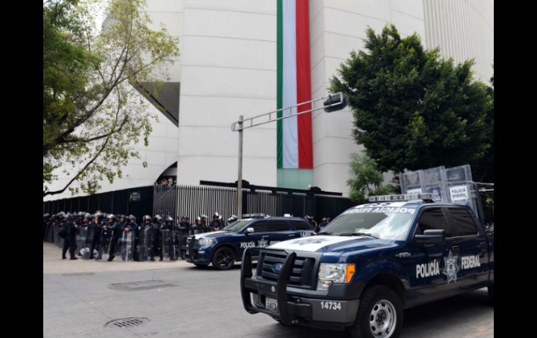 México | El presidente del Senado solicita apoyo federal y capitalino para la sesión de mañana Blindan el Senado para evitar arribo de maestros El presidente del Senado solicita apoyo de las fuerzas federales y capitalinas para la sesión de mañana Por: SUN 2 de septiembre de 2013 - 19:26 hs Elementos de la Policía Federal se apostan en las entradas del recinto legislativo. SUN / CIUDAD DE MÉXICO (02/SEP/2013).- Elementos de seguridad alrededor de la Cámara Alta despliegan este lunes el cinturón para evitar el arribo de maestros de la Coordinadora Nacional de Trabajadores de la Educación ( CNTE) en protesta por la reforma educativa. Varios tráileres arribaron a las inmediaciones del Senado, transportando las vallas que ya están siendo colocadas alrededor del recinto. El coordinador del PRI, Emilio Gamboa, informó que el presidente del Senado, Raúl Cervantes, solicitó el apoyo de las fuerzas federales y el gobierno capitalino, en previsión con la eventual aprobación de la reforma educativa y poder celebrar la sesión de mañana martes. Temas Cámara de Senadores Estados Ciudad de México CNTE Policía Federal Lee También Detienen a cuatro jóvenes armados con fusiles automáticos en Sinaloa Liverpool: ¡Laptops en menos de 5 mil pesos que no te puedes perder! Zague aseguró que "no existe calidad" en el futbol mexicano Suman 44 muertos y miles de damnificados por lluvias en cinco estados Recibe las últimas noticias en tu e-mail Todo lo que necesitas saber para comenzar tu día Registrarse implica aceptar los Términos y Condiciones