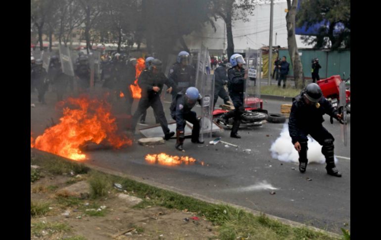 México | En la ciudad de México y en Chiapas se reportan algunos sucesos violentos Bloqueos, cócteles molotov e irrupción en desfile marcan protestas En la ciudad de México y en Chiapas se reportan algunos sucesos violentos Por: EL INFORMADOR 20 de noviembre de 2014 - 18:00 hs Un grupo de encapuchados se enfrentaron a granaderos en la calzada Ignacio Zaragoza en las inmediaciones del AICM. SUN / J. Cabrera CIUDAD DE MÉXICO (20/NOV/2014).- México vive este jueves una jornada de bloqueos de avenidas, detonación de cócteles molotov contra policías y la irrupción en un desfile que conmemoraba el 104 aniversario de la Revolución Mexicana, durante la llamada cuarta jornada nacional para reclamar la aparición con vida de 43 estudiantes desaparecidos. Las concentraciones en su mayoría se desarrollaron sin incidentes, aunque en ciudad de México y Chiapas se reportan algunos sucesos violentos por el lanzamientos de bombas caseras y agresión a comercios. En las inmediaciones del Aeropuerto Internacional de la Ciudad de México unas 200 personas encapuchadas lanzaron cócteles molotov a policías, en lo que se convirtió en uno de los momentos más tensos de la primera mitad de la jornada. Los jóvenes intentaron llegar desde esta mañana a las instalaciones del aeropuerto capitalino para bloquearlo como parte de las manifestaciones en solidaridad con los 43 estudiantes que desaparecieron hace casi dos meses en Iguala, Guerrero. Jóvenes con los rostros cubiertos bloquearon durante media hora una de las avenidas clave para ingresar a la terminal, pero los antidisturbios de la capital formaron una valla para impedir su avance. Los estudiantes se retiraron con rumbo a la Plaza de las Tres Culturas, donde esta tarde partió una de las tres grandes marchas convocadas en la capital. Otro de los brotes violentos de las manifestaciones se registró en San Cristóbal de las Casas, donde jóvenes rompieron cristales y lanzaron bombas caseras contra dos comercios. En el estado de Guerrero, integrantes del sindicato Coordinadora Estatal de Trabajadores de la Educación de Guerrero (CETEG) lideraron manifestaciones de más de dos mil personas, que se concentraron de forma temporal en la Autopista del Sol y el Congreso del estado. El tráfico de vehículos por esa autopista, que comunica la capital del país con Acapulco, estuvo cortado durante varias horas. Guerrero fue uno de los estados que suspendió los actos oficiales que tradicionalmente se realizan cada 20 de noviembre con motivo de la conmemoración de la Revolución Mexicana. En Oaxaca, jóvenes se manifestaron durante la ceremonia oficial para recordar esta emblemática fecha con cartulinas que indicaban: "No se puede hablar de libertad en un país en donde impera la impunidad". La misma escena se replicó en Chihuahua, donde cerca de 300 personas, en su mayoría estudiantes y académicos irrumpieron en el desfile conmemorativo de la Revolución Mexicana para exigir justicia por los estudiantes desaparecidos. Frente al escenario donde se encontraba el gobernador, César Duarte, los manifestantes pasaron lista de los 43 desaparecidos y se dejaron caer al suelo mientras gritaban: "¿Por qué, por qué, por qué nos asesinan, si somos la esperanza de América Latina?". La concentración en la ciudad de Cuernavaca, en el estado de Morelos, aledaño a la capital, incluye grafitis con pintura roja en la glorieta de la Paloma de la Paz con mensajes de "Fue el Estado" y "Faltan 43". En el Estado de México estudiantes tomaron peajes que comunican Ciudad de México con Toluca y Pachuca y dieron libre acceso a los vehículos. En Guadalajara, la UdeG y la Universidad del Valle de Atemajac suspendieron clases en respaldo a los estudiantes de Ayotzinapa. En las marchas de esta ciudad pancartas citan leyendas como: "Guerrero aguanta, Jalisco se levanta. ¡Ayotzinapa vive!". Esta tarde, aún se realizan las manifestaciones en diversos lugares del país, en donde coordinados con la ciudad de México, los contingentes partieron a las 18:00 horas. Con información de EFE Temas Estados Guerrero Manifestaciones en México Desapariciones y denuncias Lee También Revelan llamada al 911 con que se reportó la muerte de Diane Keaton Clara Brugada rinde su Primer Informe de Gobierno SMN advierte lluvias y bajas temperaturas en México esta semana Morelos reporta siete muertos tras lluvias de las últimas horas Recibe las últimas noticias en tu e-mail Todo lo que necesitas saber para comenzar tu día Registrarse implica aceptar los Términos y Condiciones