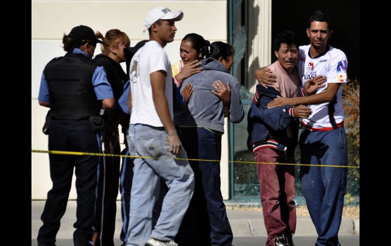México | TIÑEN DE ROJO CIUDAD JUÁREZ; 20 ASESINADOS EL FIN DE SEMANA Breves de seguridad . Por: EL INFORMADOR 8 de noviembre de 2010 - 04:31 hs Familiares de los oficiales de Policía reaccionan ante la escena del crimen, en Ciudad Juárez. AP / TIÑEN DE ROJO CIUDAD JUÁREZ; 20 ASESINADOS EL FIN DE SEMANA CIUDAD JUÁREZ, CHIHUAHUA (08/NOV/2010).- Al menos 20 personas fueron asesinadas el fin de semana en hechos violentos relacionados con el narcotráfico en esta fronteriza localidad. Siete de los cadáveres fueron encontrados el sábado en el exterior de una vivienda y al parecer corresponden a personas que se encontraban en una fiesta familiar, afirmó el portavoz de la Fiscalía del Estado de Chihuahua, Arturo Sandoval. Otras 11 personas fueron asesinadas ese día en la ciudad, entre ellas los de dos víctimas que fueron descuartizadas. Dos policías, Yésica Martínez Puentes y de César Martínez Hernández, fueron asesinados a disparos ayer en el interior de su automóvil patrulla. EJECUTAN EN SINALOA A OCHO PERSONASCULIACÁN, SINALOA.- El Estado vive una nueva jornada trágica con ocho ejecuciones en las ultimas 24 horas, dos de las víctimas, jóvenes, fueron privados de la vida en el fraccionamiento Cumbres Real de esta ciudad capital, a espaldas de la Escuela Secundaria ETI 90. Las autoridades judiciales informaron que Jesús Alberto Chaidez Jiménez, residente de Tamazula, Durango, y Eduardo Gallardo Plata, fueron víctimas de un atentado cuando circulaban en una camioneta Tacoma, color blanco. En tanto que en el Puerto de Mazatlán, en dos hechos distintos, dos personas fueron asesinadas. En Ciudad de Oaxaca, la Policía encontró una cabeza humana dentro de una caja envuelta para regalo que fue abandonada el sábado por la noche al lado de un acantilado famoso por su paisaje. PISTOLEROS CRUZAN FUEGO CON MILITARES EN NUEVO LEÓNMONTERREY, NUEVO LÉON.- Efectivos del Ejército aseguraron 13 armas, más de mil cartuchos, cuatro vehículos y ocho chalecos antibalas después de un enfrentamiento que ocurrió en calles del municipio de Guadalupe, donde al menos una docena de pistoleros logró escapar. Al filo de las 23:30 horas del sábado, unidades militares se toparon con un convoy de 10 camionetas de pistoleros en las calles de las colonias Nueva Linda Vista y Purísima, al oriente de la Zona Metropolitana. Después de un intercambio de tiros quedó volcada una camioneta de los pistoleros y tres vehículos más fueron abandonados sobre las calles Santa Rosalía y Tauro. Además, varios vehículos particulares fueron dañados durante la persecución- balacera. Temas Breves de México Lee También Esta es la verdadera identidad del "Juan Gabriel" captado en París t.A.T.u anuncia concierto en México: precio de boletos y cuándo salen a la venta ¿Será obligatorio presentar la CURP biométrica para trámites escolares? Día de Muertos 2025: ¿Por qué será más caro el Pan de Muerto este año? Recibe las últimas noticias en tu e-mail Todo lo que necesitas saber para comenzar tu día Registrarse implica aceptar los Términos y Condiciones
