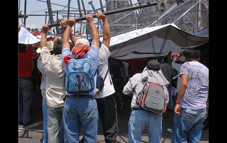 México | La parte trasera del templete se desplomó sobre representantes del SME Caída de templete en Zócalo del DF deja 11 heridos Representantes de medios mexicanos que realizaban la cobertura del mitin del sindicato fueron agredidos por miembros del SME Por: SUN 1 de mayo de 2011 - 13:29 hs Personas asistentes al Zócalo ayudan en el rescate de lesionados. NOTIMEX / CIUDAD DE MÉXICO (01/MAY/2011).- Al menos 11 personas lesionadas, de acuerdo con reportes de la Secretaría de Seguridad Pública del Distrito Federal (SSPDF), fue el saldo que dejó la caída de parte del templete que utilizaban representantes de organizaciones sindicales en un mitin en el Zócalo de la Ciudad de México. La Policía capitalina también reportó agresiones a representantes de medios de comunicación por parte de miembros del Sindicato Mexicano de Electricistas (SME). Cuando estaba casi por terminar el mitin en la Plaza de la Constitución con motivo del Día Internacional del Trabajo, la parte trasera del templete donde se encontraban, entre otros los dirigentes de los electricistas, Martín Esparza; de los telefonistas, Francisco Hernández Juárez, y de los pilotos, Fernando Perfecto, entre otros, se vino hacia el frente, lesionando a Miguel Gálvez, María Teresa Muñoz, Luis Ramírez y Fernando Muñoz, estos dos últimos del SME, quienes fueron atendidos por elementos de la Cruz Roja y del Escuadrón de Rescate y Urgencias Médicas. Enseguida de este hecho, algunos representantes de medios de comunicación que realizaban la cobertura informativa del accidente fueron agredidos, según sus testimonios por miembros del SME. Tal es el caso de Odette del Pino, reportera de TV Azteca, quien recibió un codazo por la espalda y algunos puñetazos que le hicieron perder el conocimiento por unos segundos. Junto con ella, también fue víctima de la ira de unas cinco personas el camarógrafo de esa televisora Alfonso Valdez, a quien, al igual que su compañera les decían: "¿Qué hacen aquí?, lárguense". Paralelamente, fue agredido entre otros el camarógrafo de Univisión Marco Campos. Temas Estados Unidos SME Distrito Federal Lee También Revelan llamada al 911 con que se reportó la muerte de Diane Keaton SMN advierte lluvias y bajas temperaturas en México esta semana Detienen a cuatro jóvenes armados con fusiles automáticos en Sinaloa Organismo internacional prevé tensión comercial a nivel global en 2026 Recibe las últimas noticias en tu e-mail Todo lo que necesitas saber para comenzar tu día Registrarse implica aceptar los Términos y Condiciones
